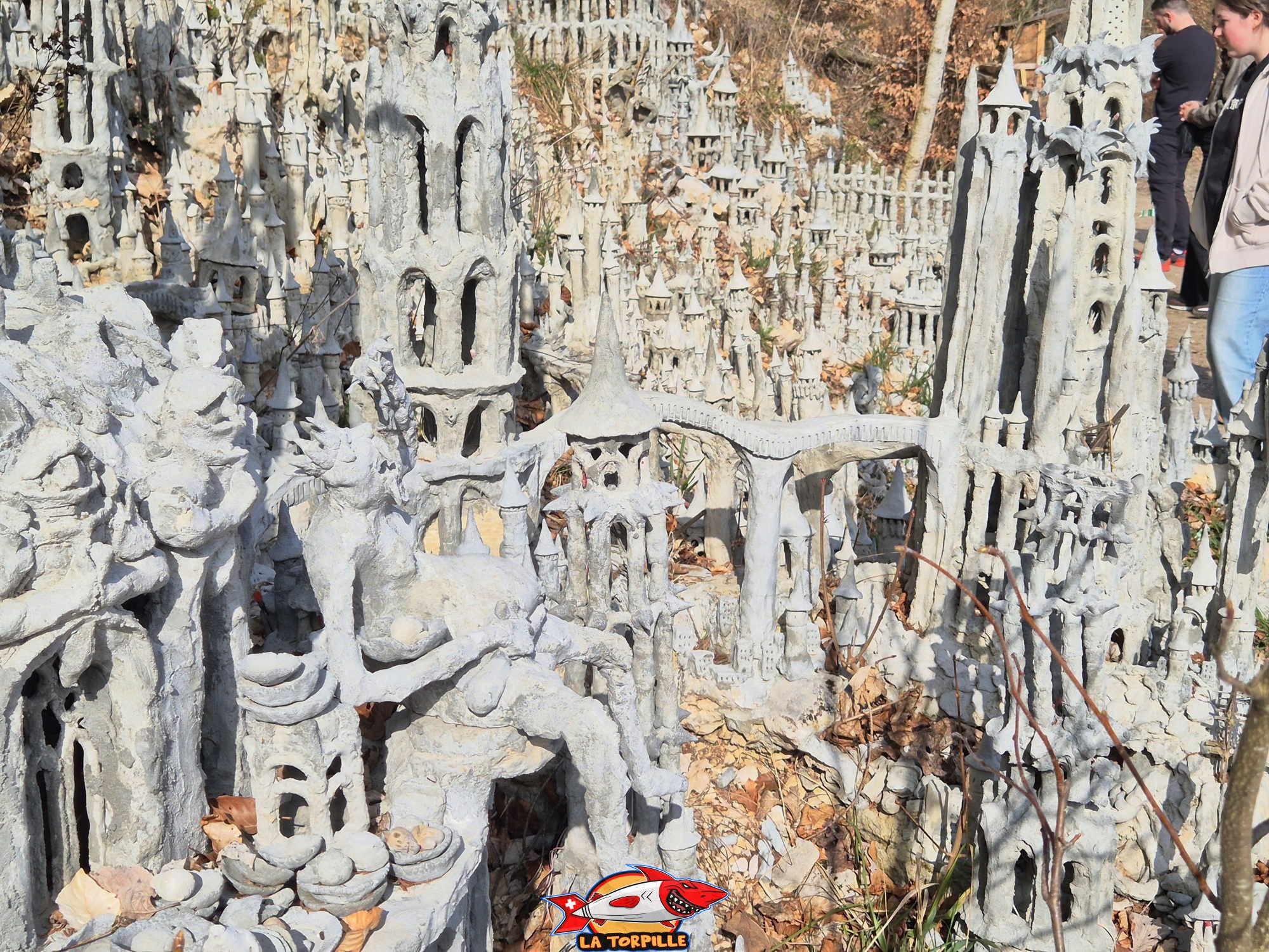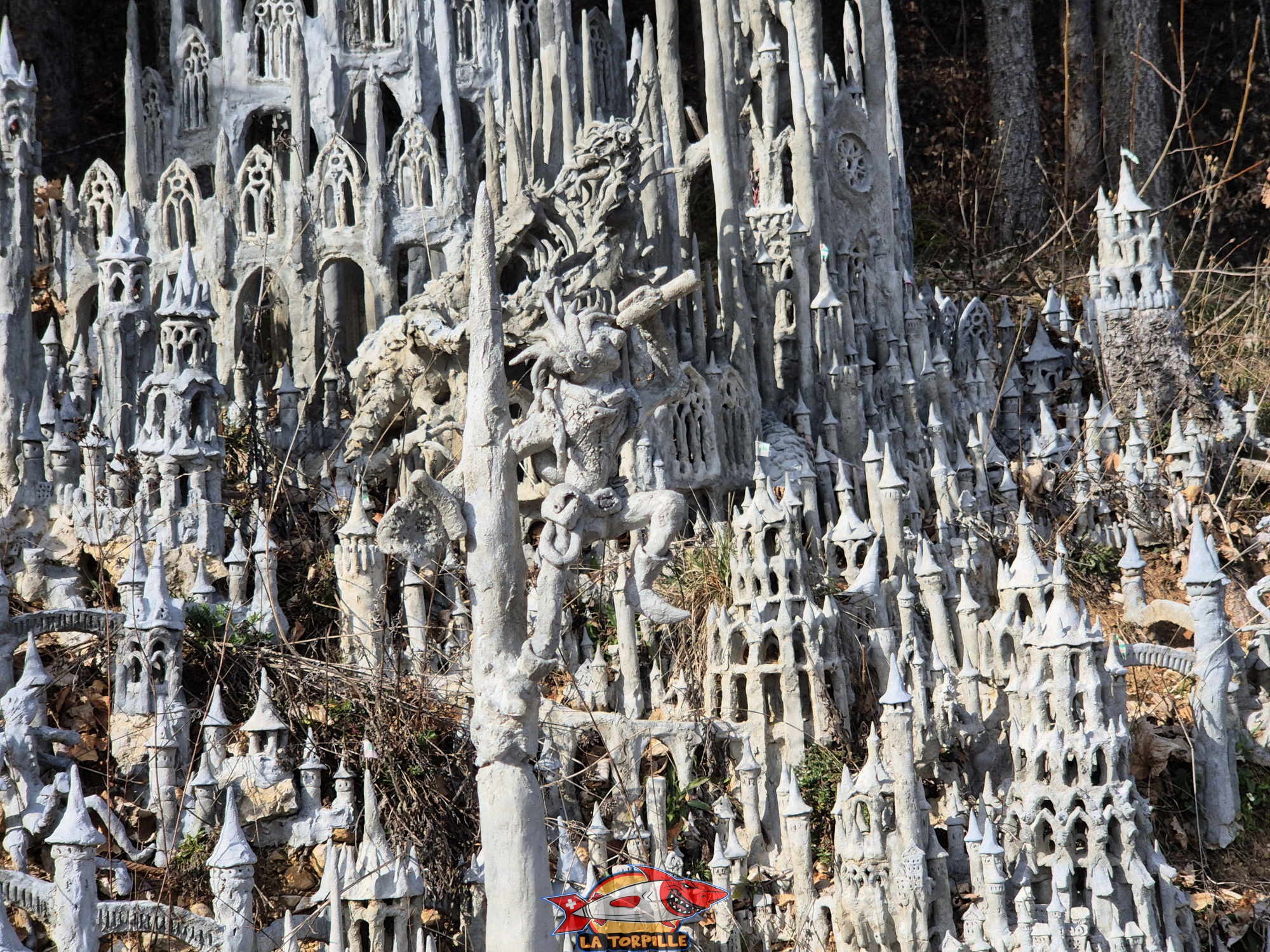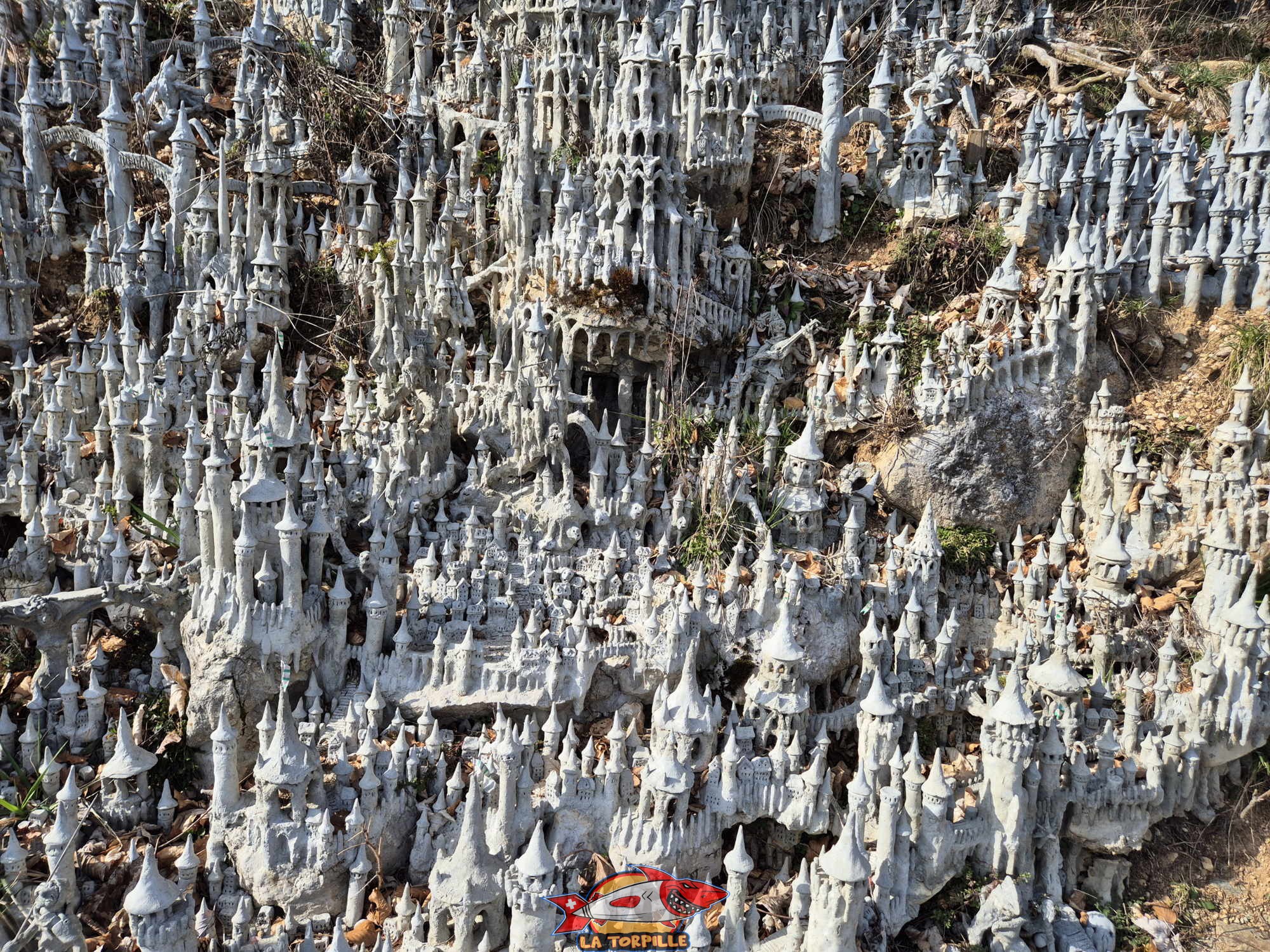 La citadelle ressemble à une ville médiévale fantastique surgissant du sol. Elle se compose d’un ensemble dense de tours, de tourelles, d’arcs, de ponts et de petites constructions qui s’élèvent comme des stalagmites ou comme des arbres cherchant la lumière.
