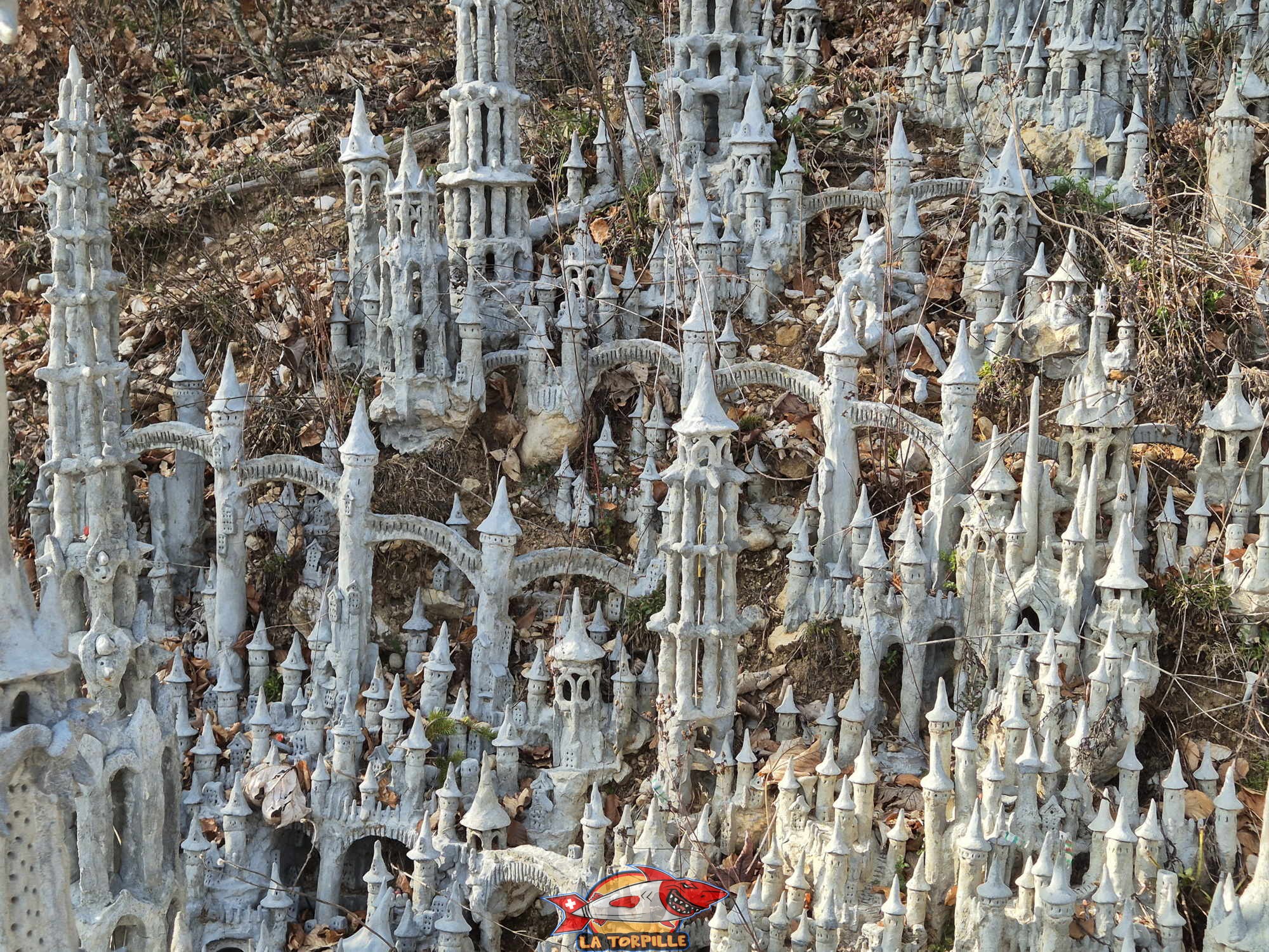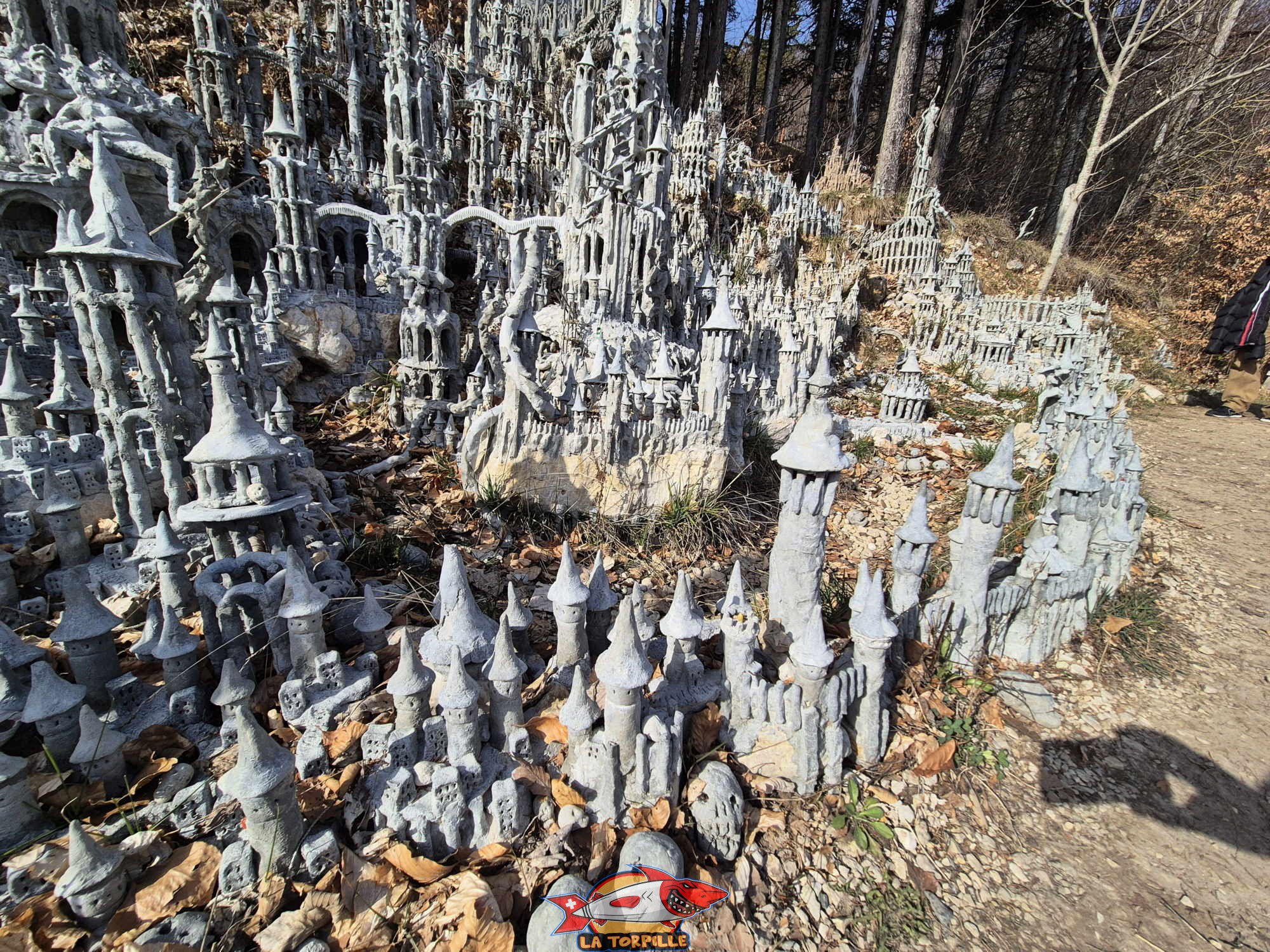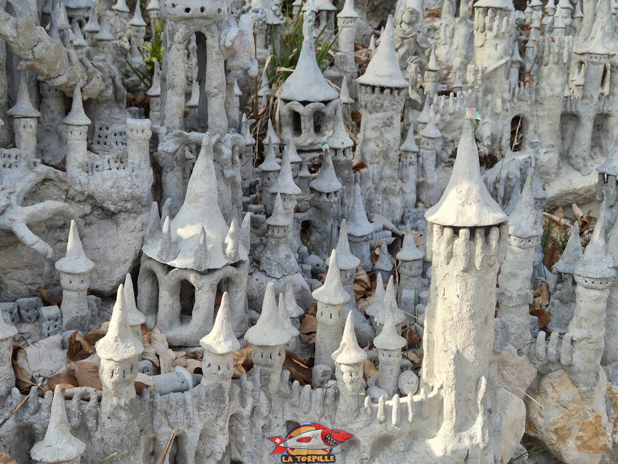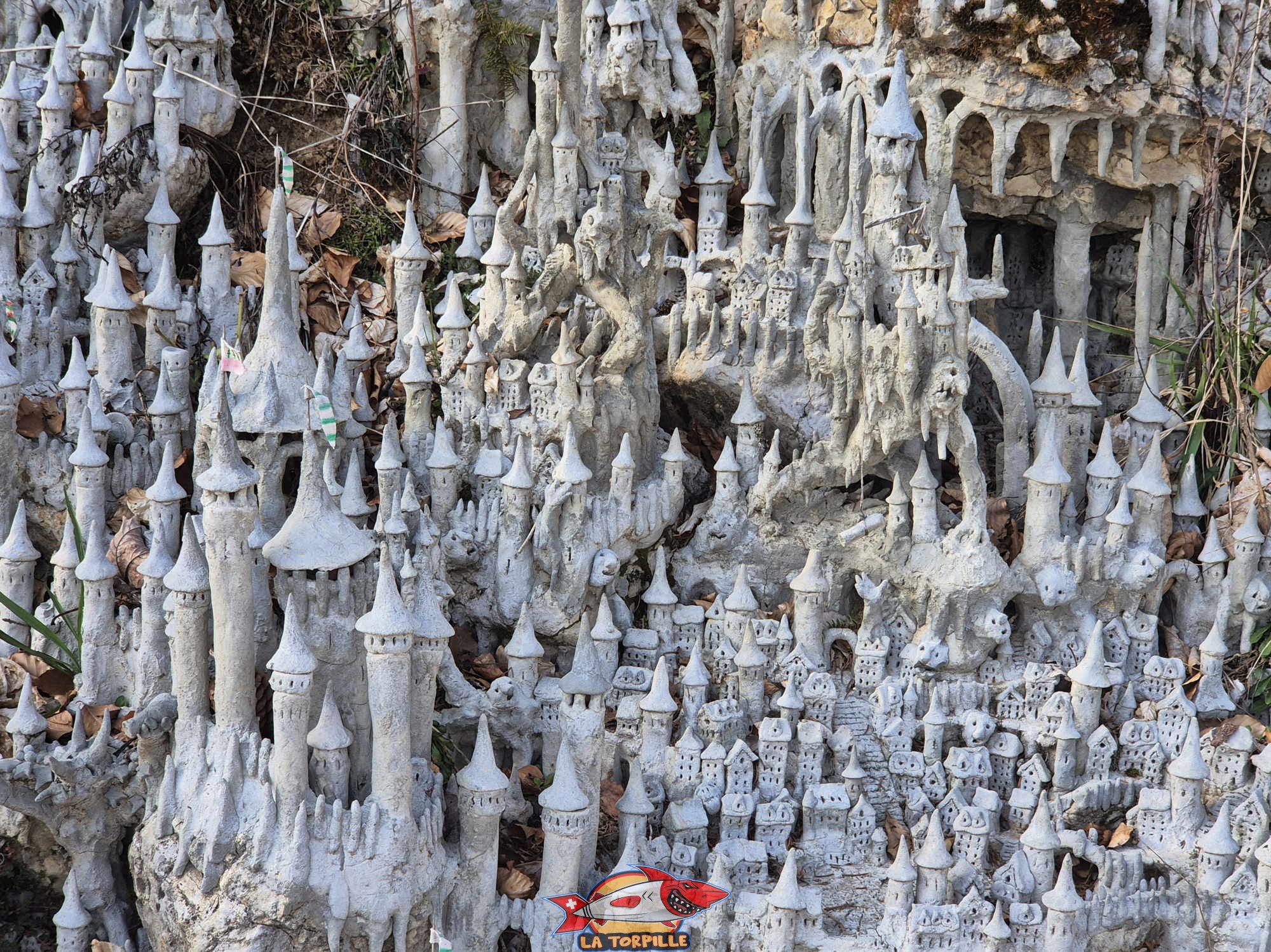 La citadelle ressemble à une ville médiévale fantastique surgissant du sol. Elle se compose d’un ensemble dense de tours, de tourelles, d’arcs, de ponts et de petites constructions qui s’élèvent comme des stalagmites ou comme des arbres cherchant la lumière.