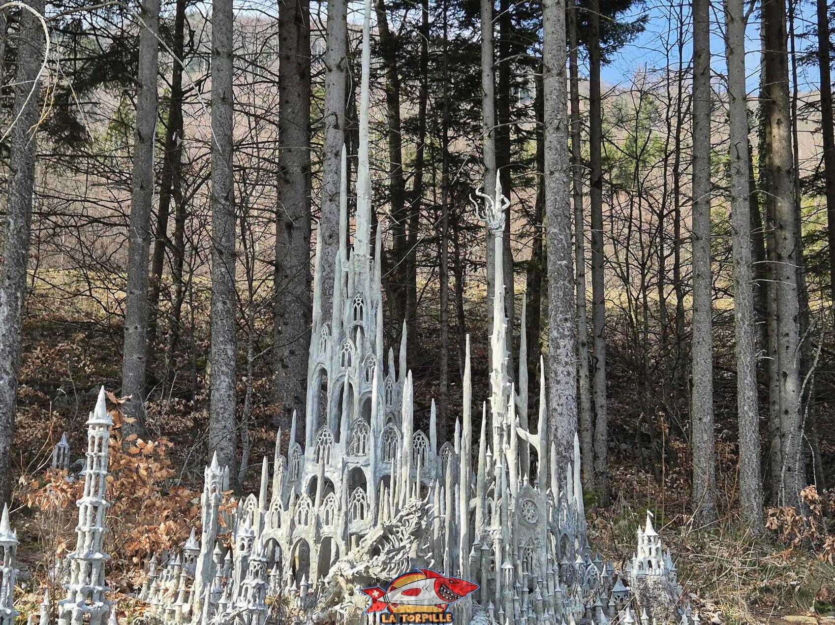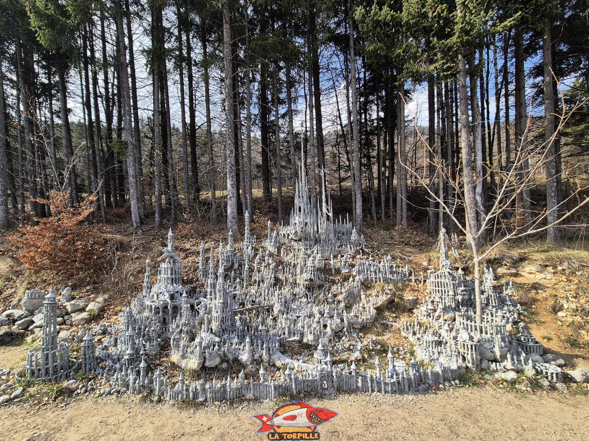 L’ensemble s’intègre directement dans le paysage forestier, entre les plantes et les reliefs naturels, donnant l’impression qu’une civilisation mystérieuse aurait bâti sa capitale au cœur des bois.