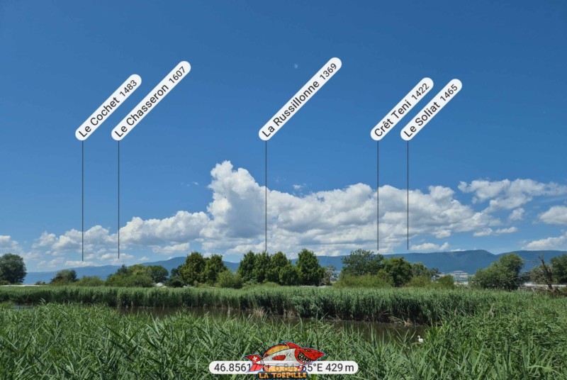 Le panorama, direction nord-ouest, depuis l’observatoire de la Grande Gouille, à Estavayer-le-Lac. Le Chasseron, La Russillonne, Crêt Teni, Le Soliat.