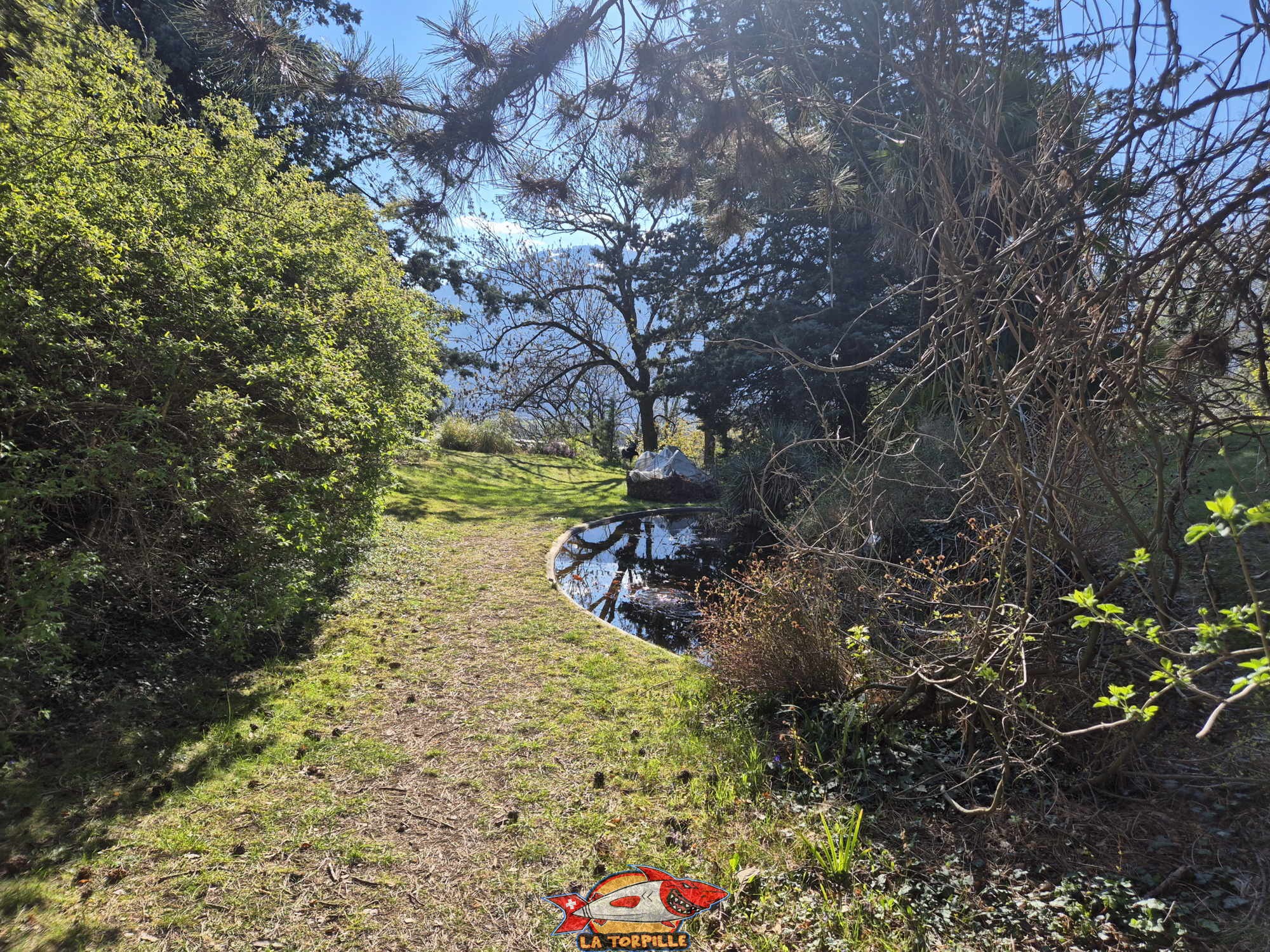 Aménagé avec des rocailles et des étangs, il offre un cadre paisible pour la promenade, ainsi qu’une vue remarquable sur la vallée et les Dents du Midi.