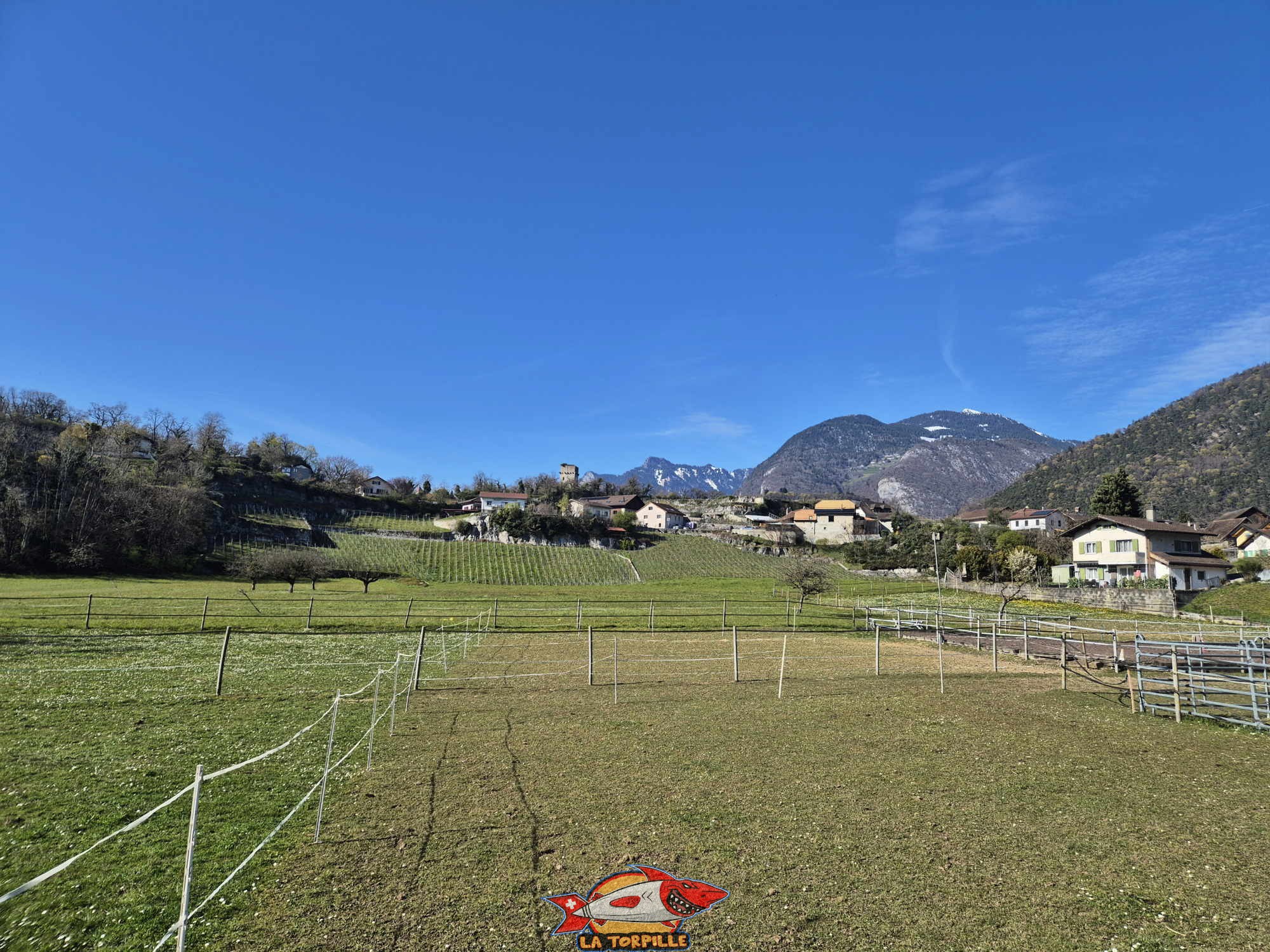 La tour de St-Triphon au sommet de la colline du jardin botanique, à quelques centaines de mètres.