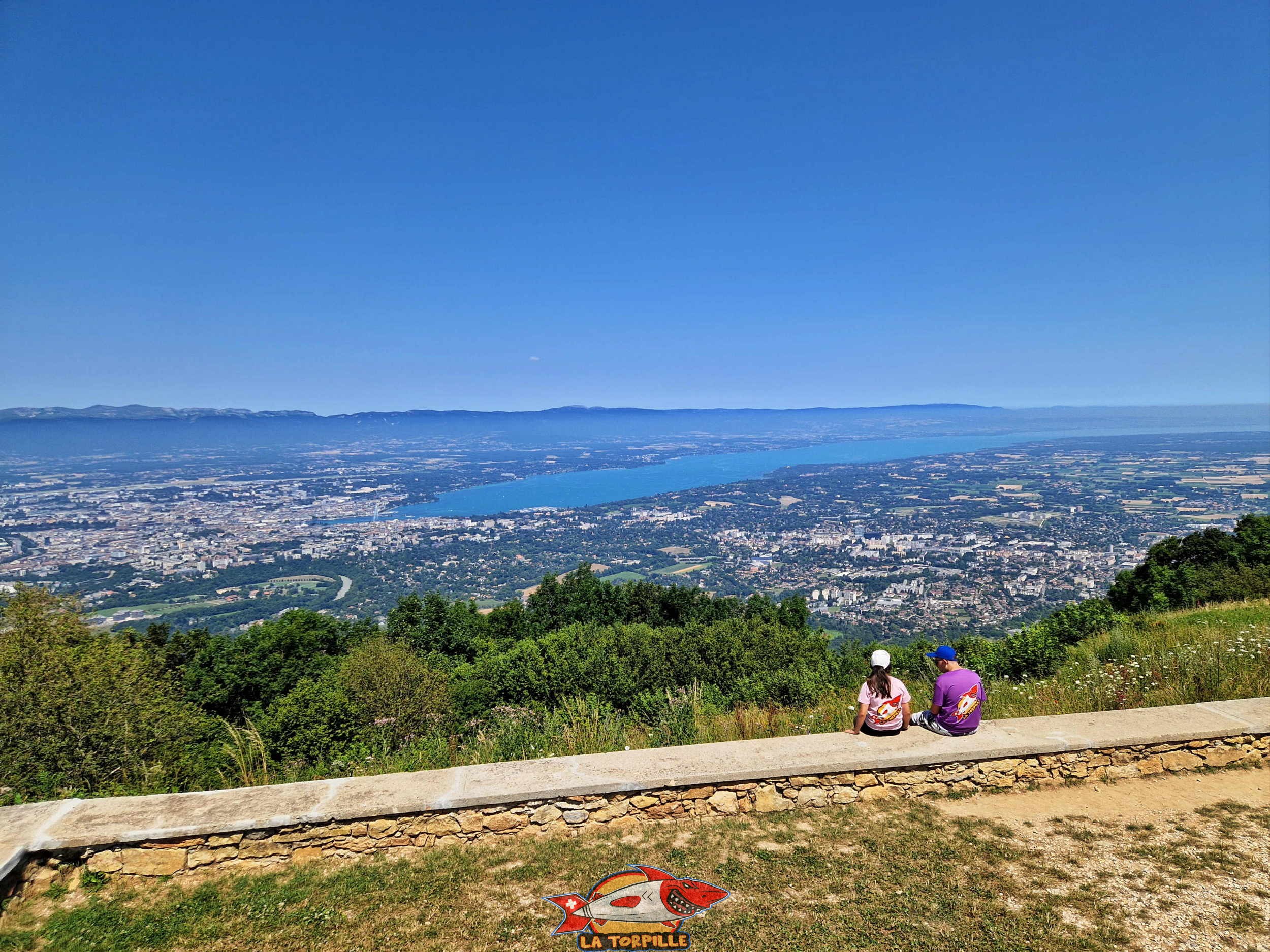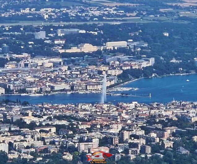 La vue sur la ville de Genève et le Jet depuis le sommet du téléphérique du Salève.