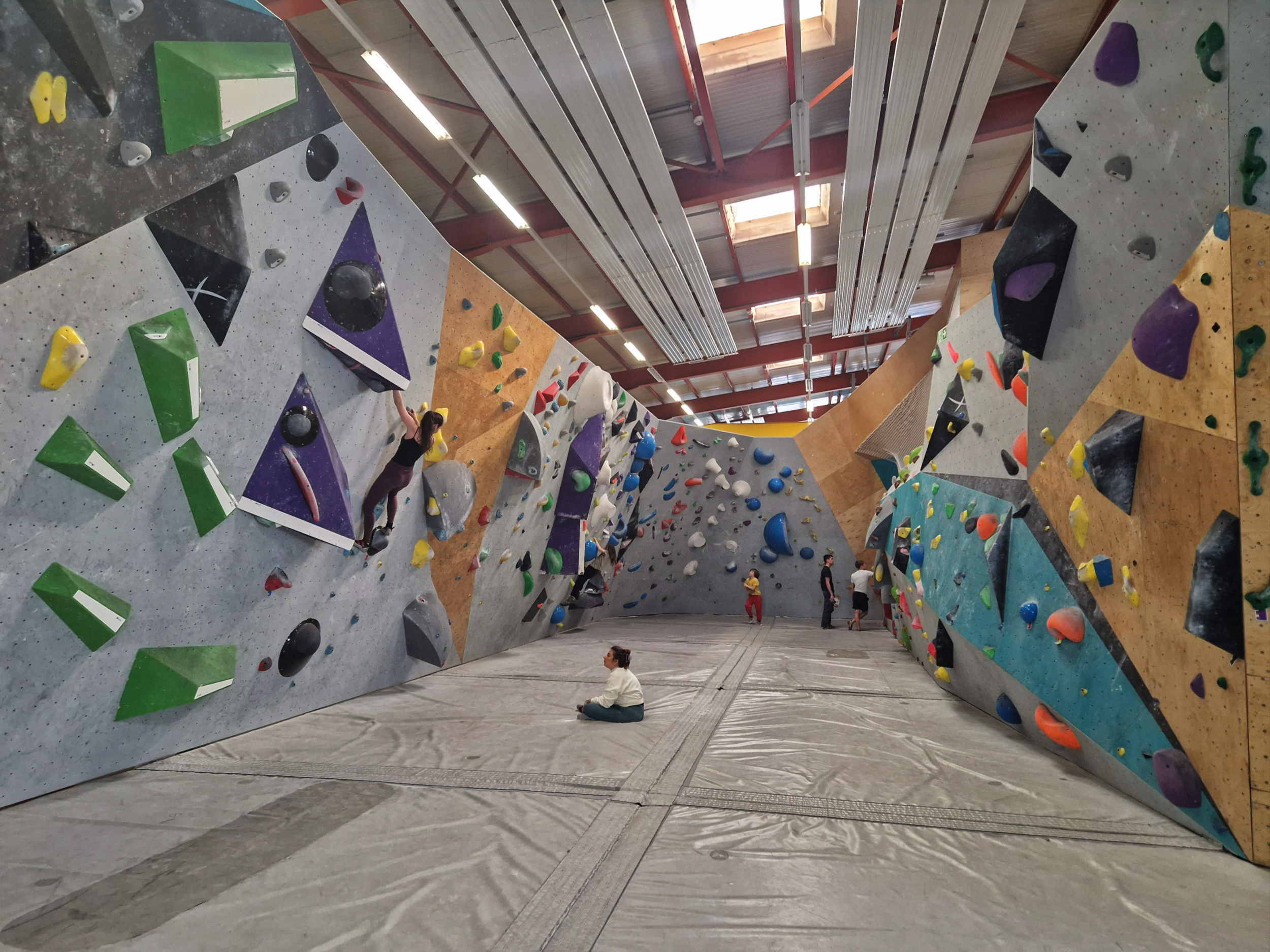 La partie de l’Entrepôt dans laquelle se trouvent les voies hautes d’escalade.