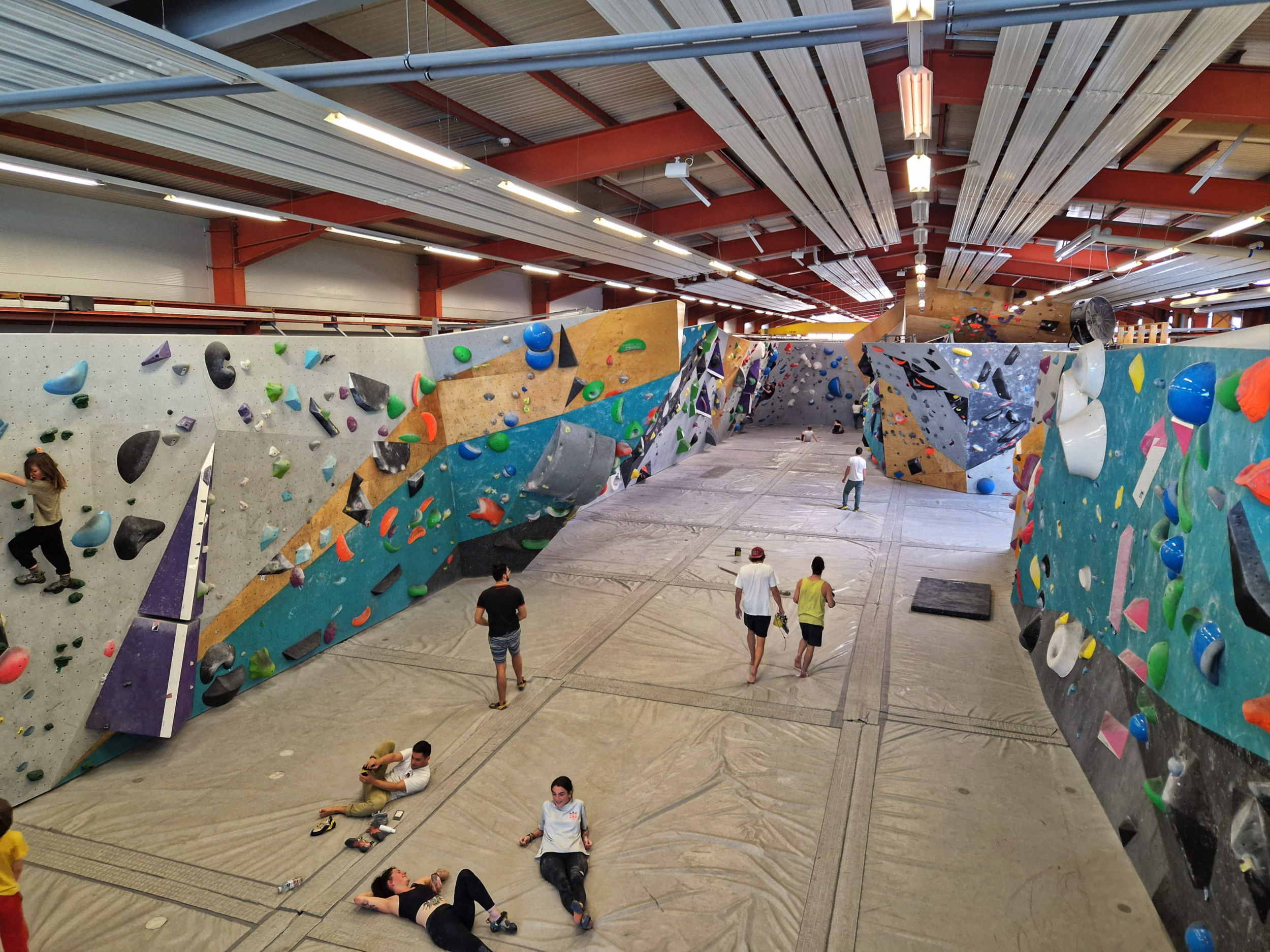 La zone d’entrainement est munie de “moonboards”, des mythiques réglettes, d’appareils de musculations ainsi que d’autres éléments d’échauffement.