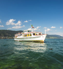 Un bateau sur le lac de Bienne. Il porte le nom de “Chasseral”, la montagne qui se trouve à l’ouest du lac de Bienne et qui domine le Jura bernois.