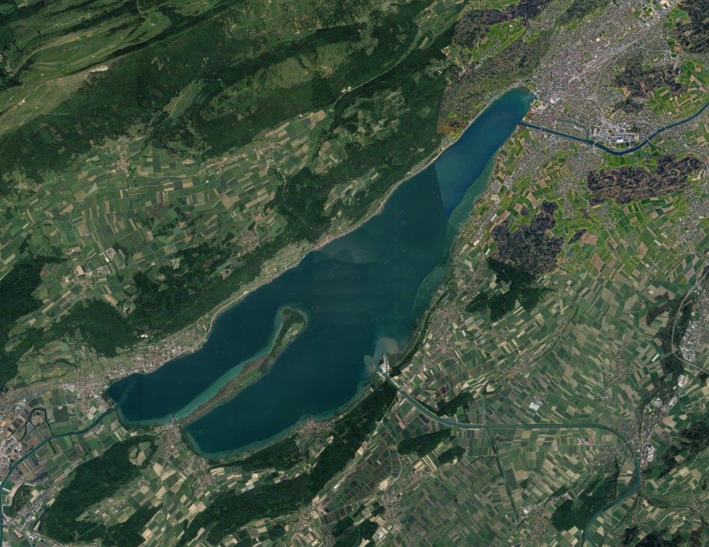 Le lac de Bienne vu de l’espace. Photo : Google Earth