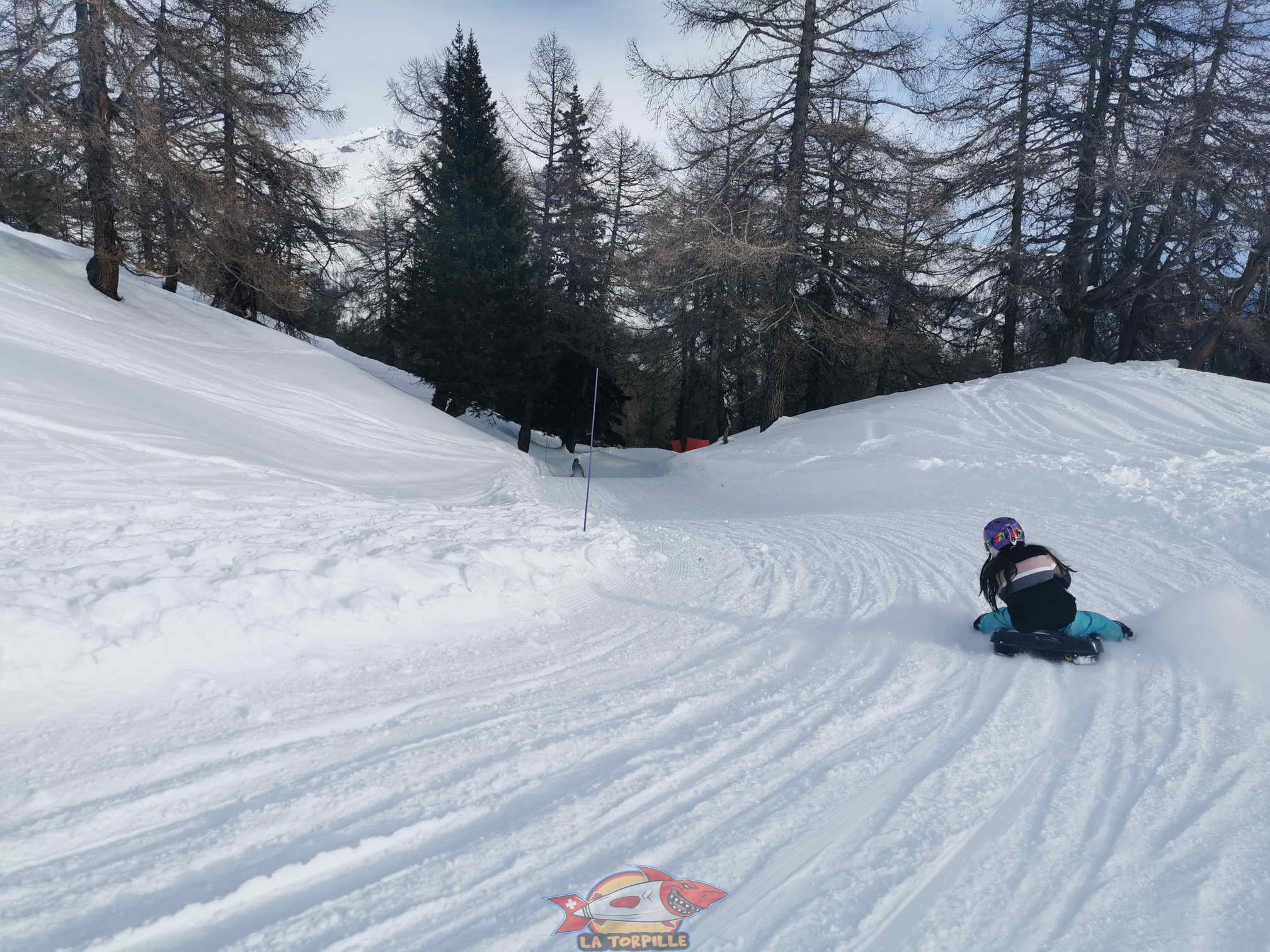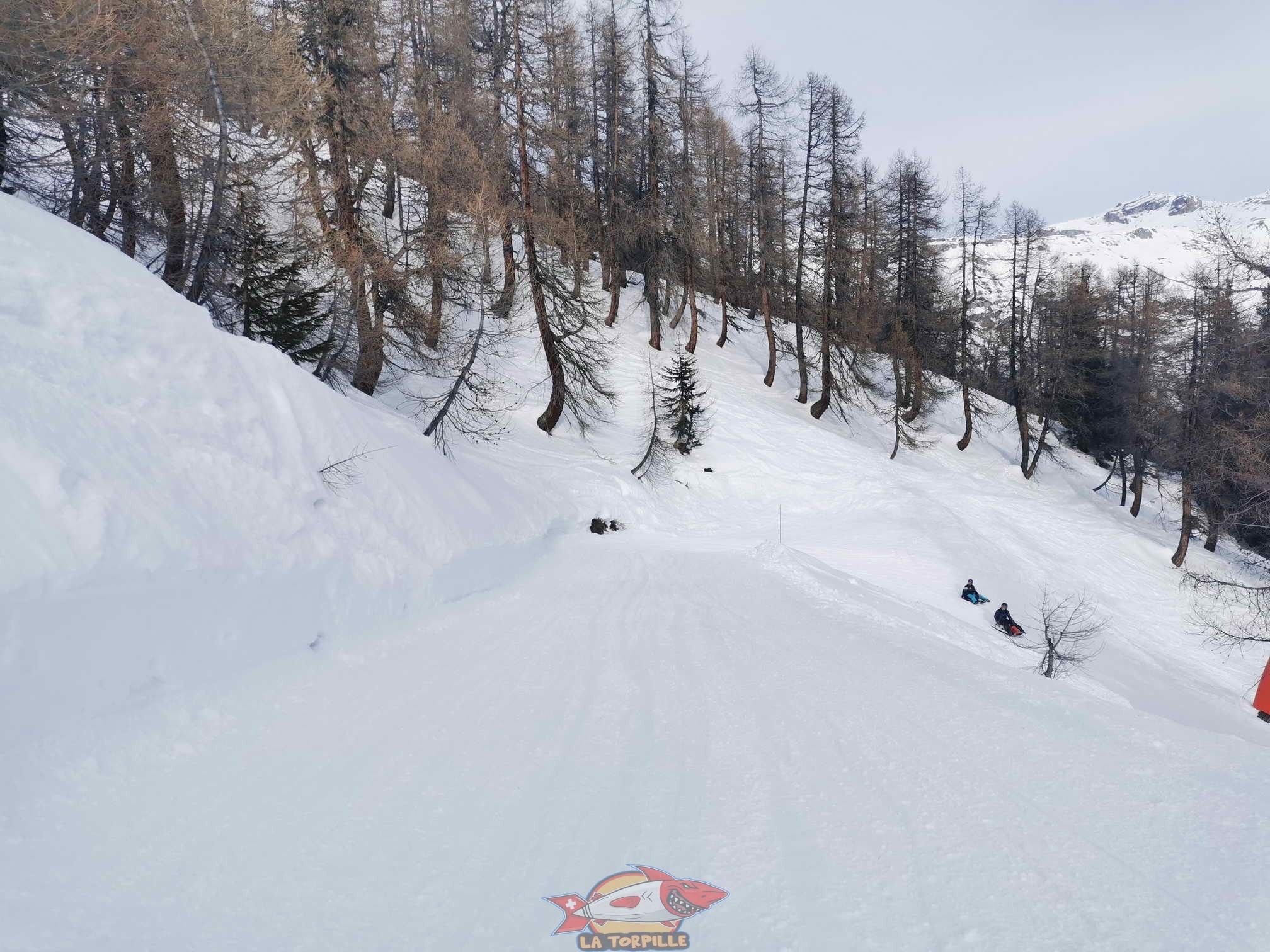 La piste de luge d’Anzère est celle qui possède la pente moyenne la plus importante (16 % ou 9°) et, donc, propose une excellente glisse, mais sans être dangereuse.