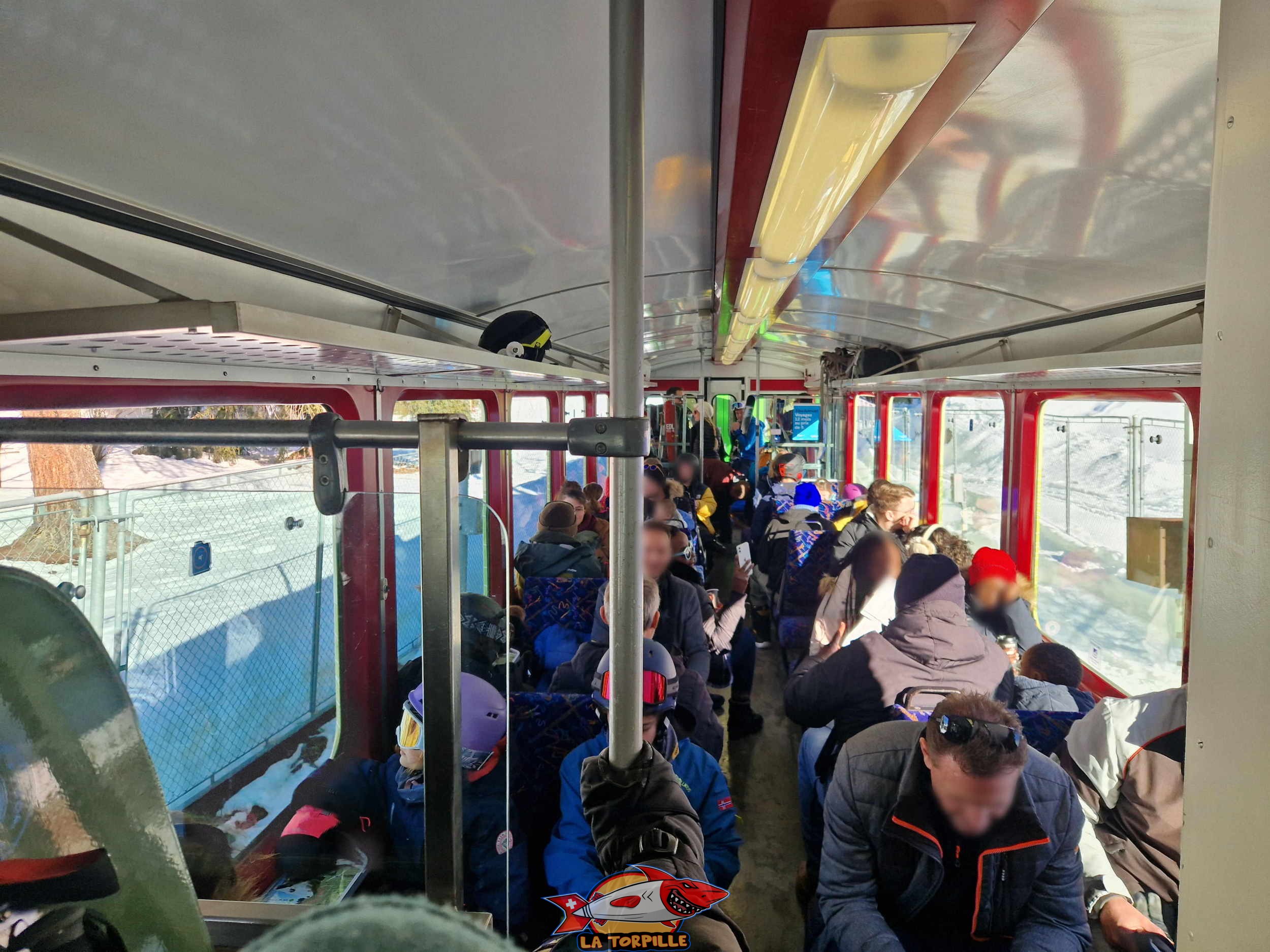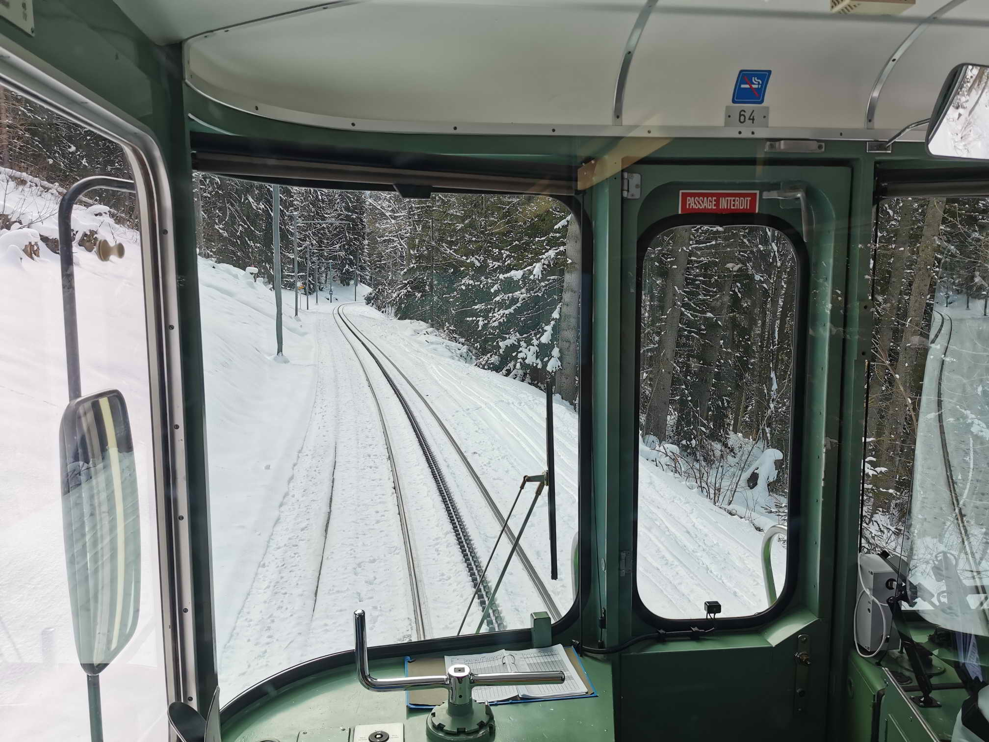 On remonte au sommet de la piste de luge de Villars en prenant le train BVB (Bex-Villars-Bretaye).