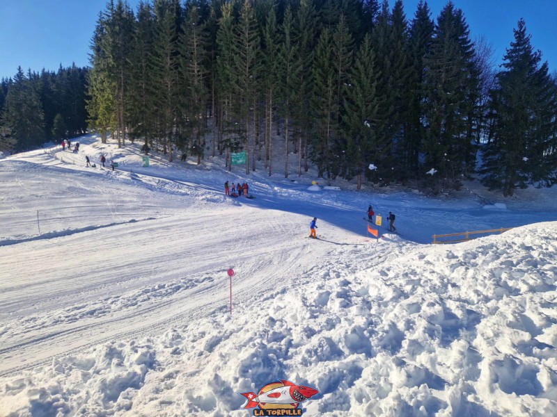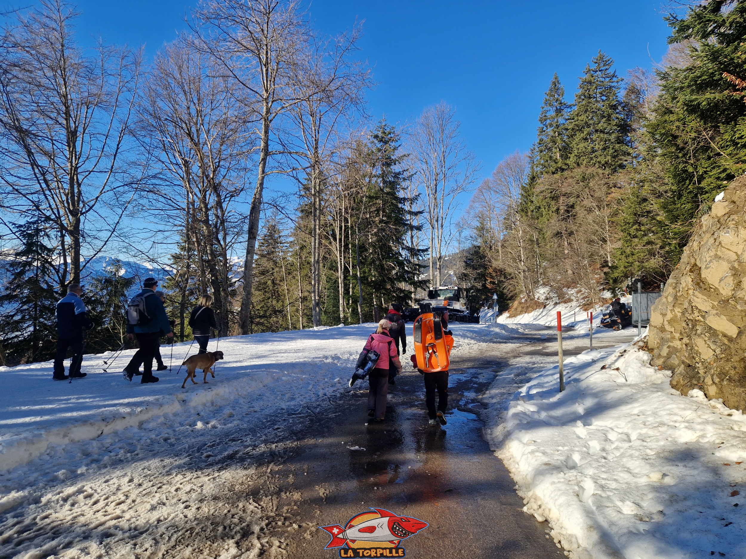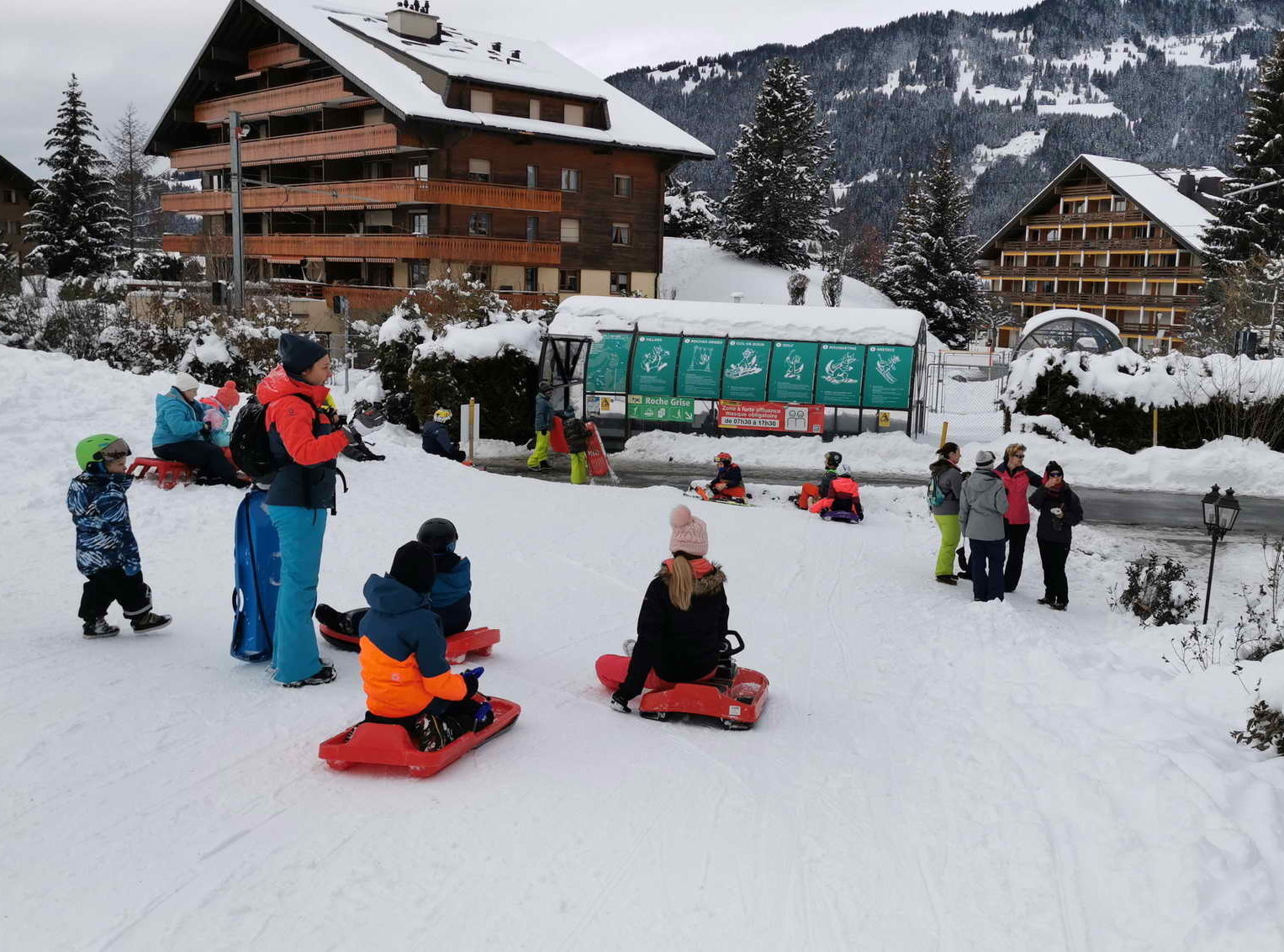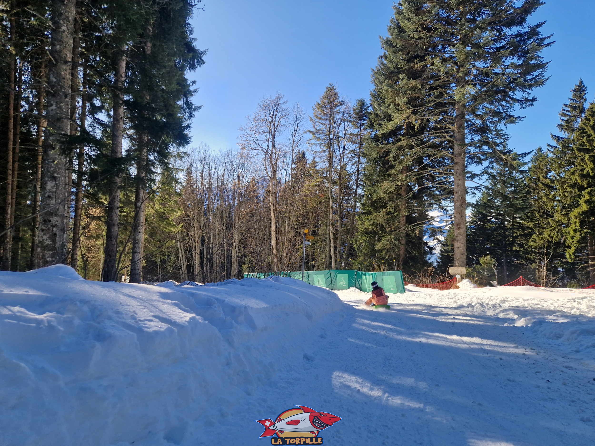 Depuis la gare BVB du col-de-Soud, il faut tirer sa luge sur environ 400 mètres en légère montée.