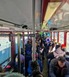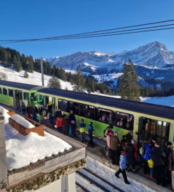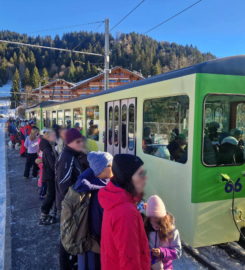 Si on vient du parking, on prend le train à l’arrêt “Roches Grises”. On peut aussi prendre le train plus bas, à Villars ou à Bex, dans la vallée du Rhône.