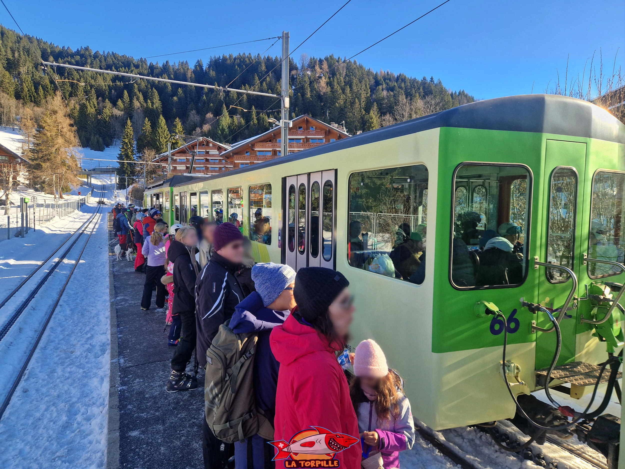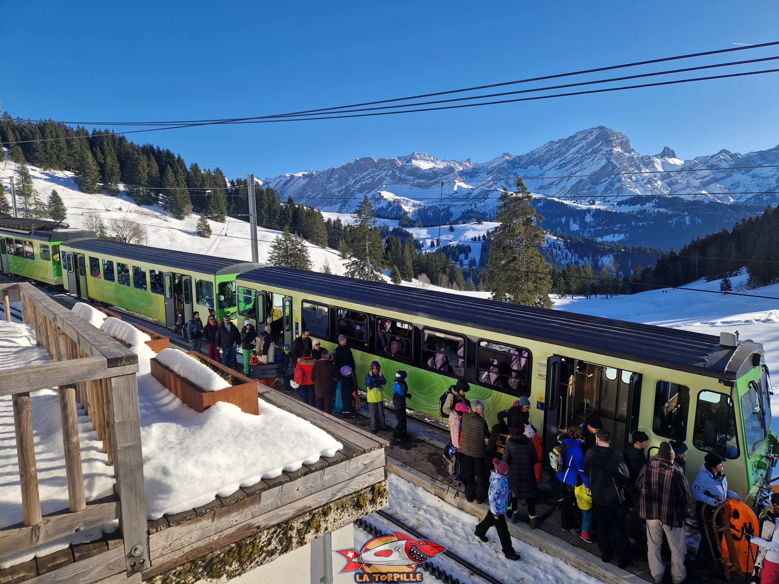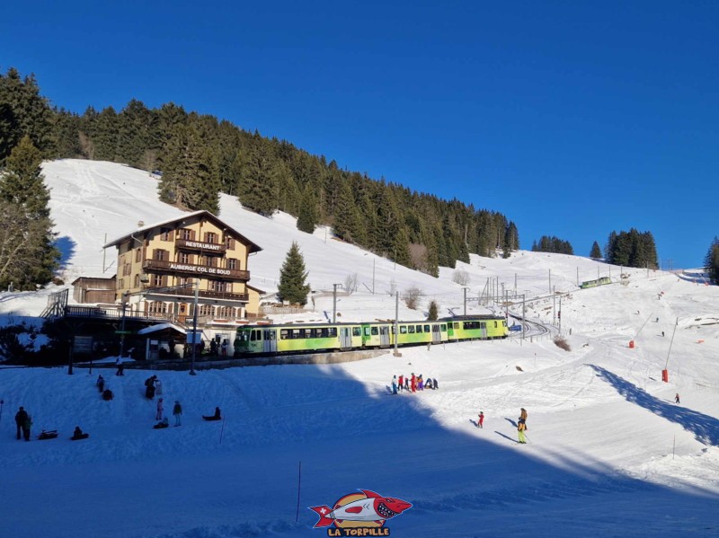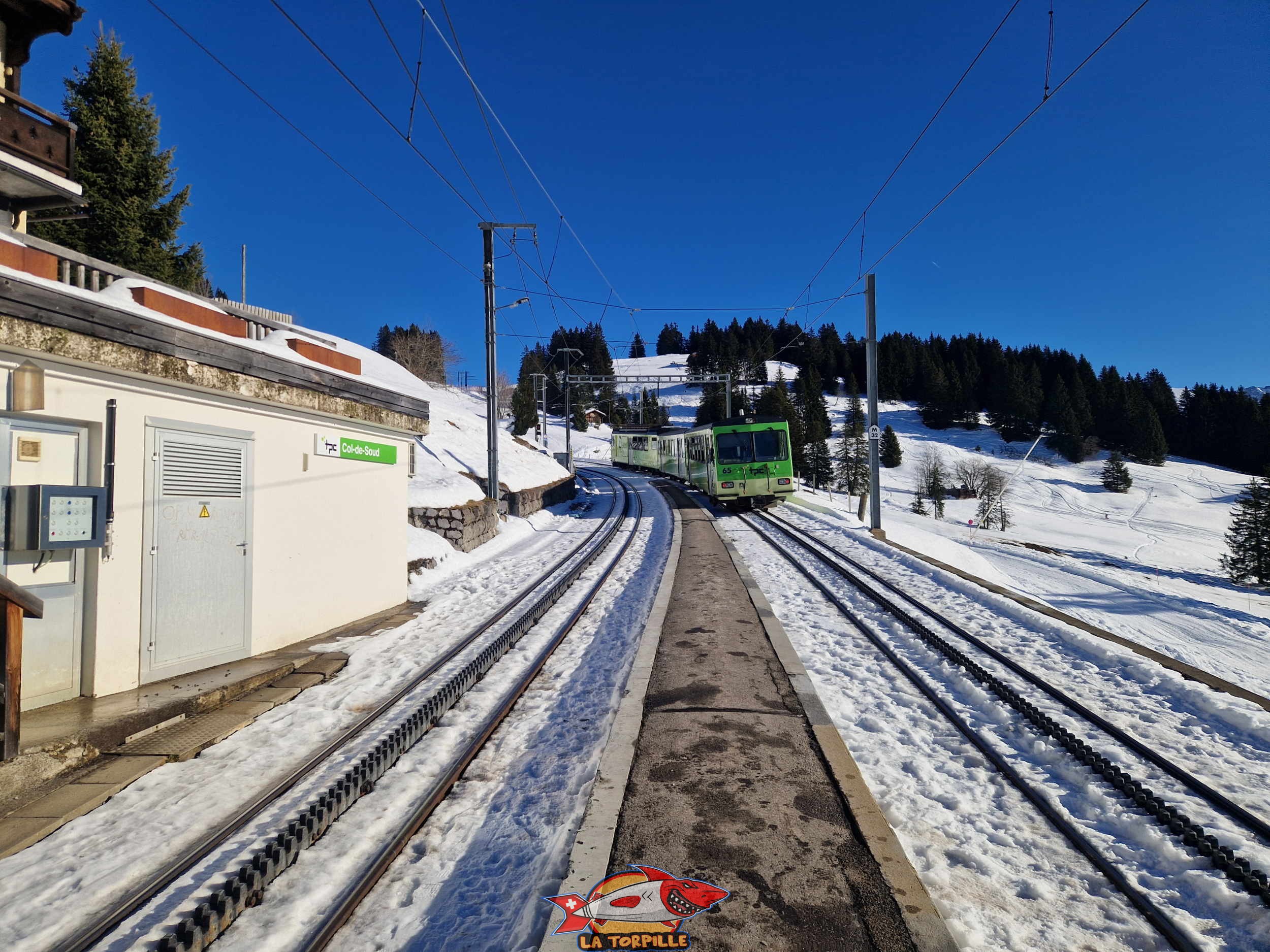 La sortie à la gare du Col-de-Soud. Ce n’est pas le terminus du train qui grimpe jusqu’à Bretaye.