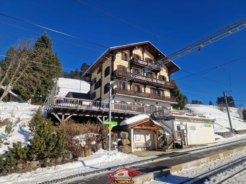 Le restaurant et auberge du Col-de-Soud au niveau de l’arrêt de train.