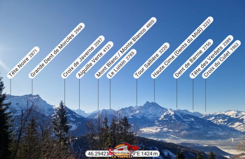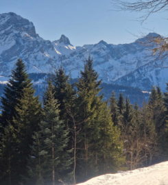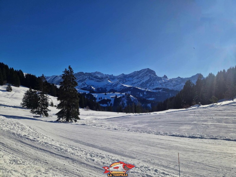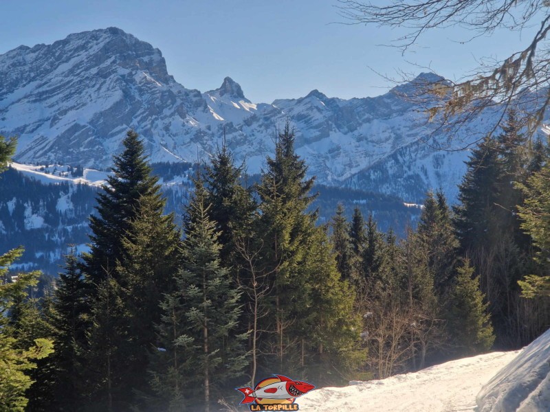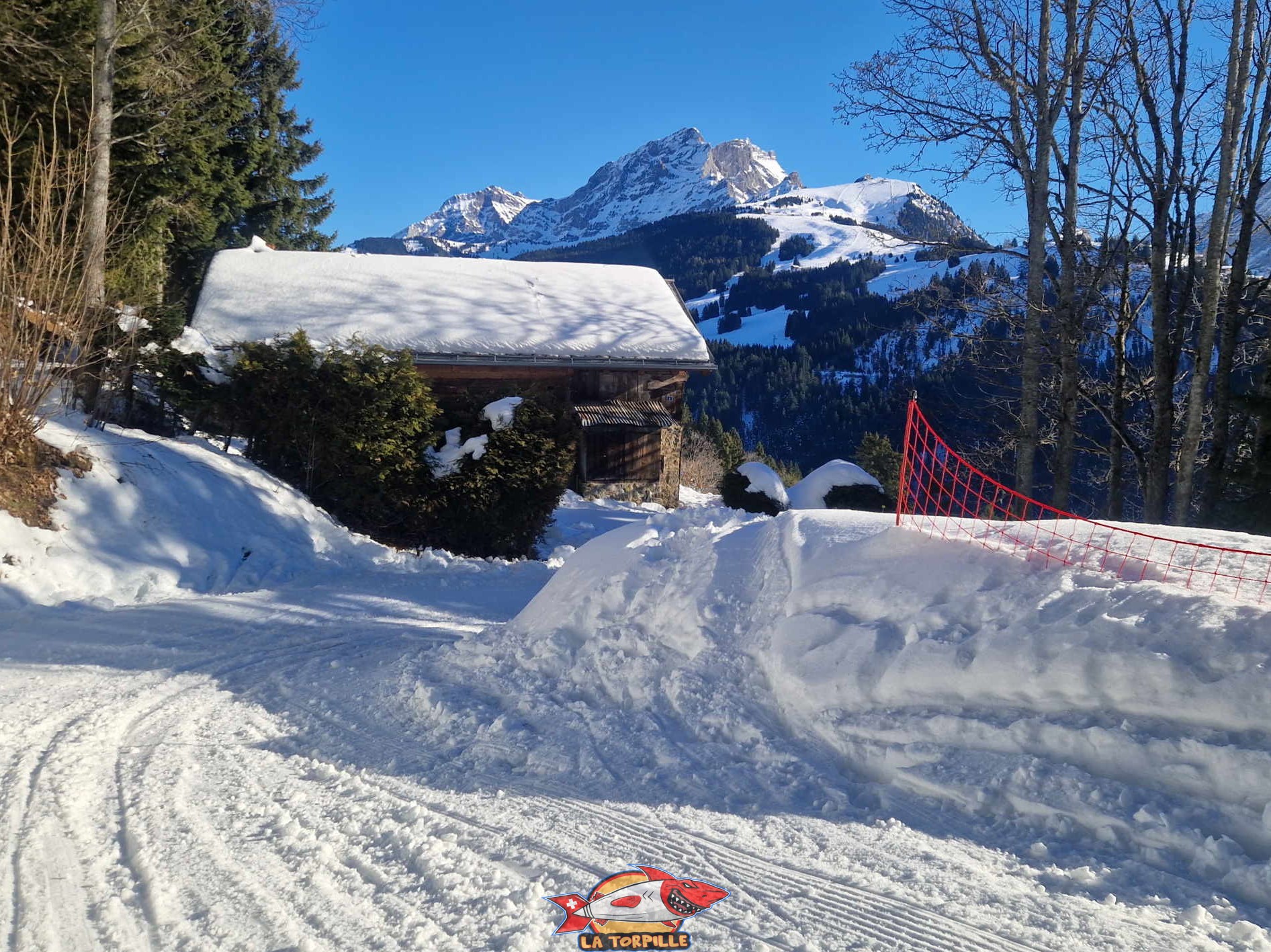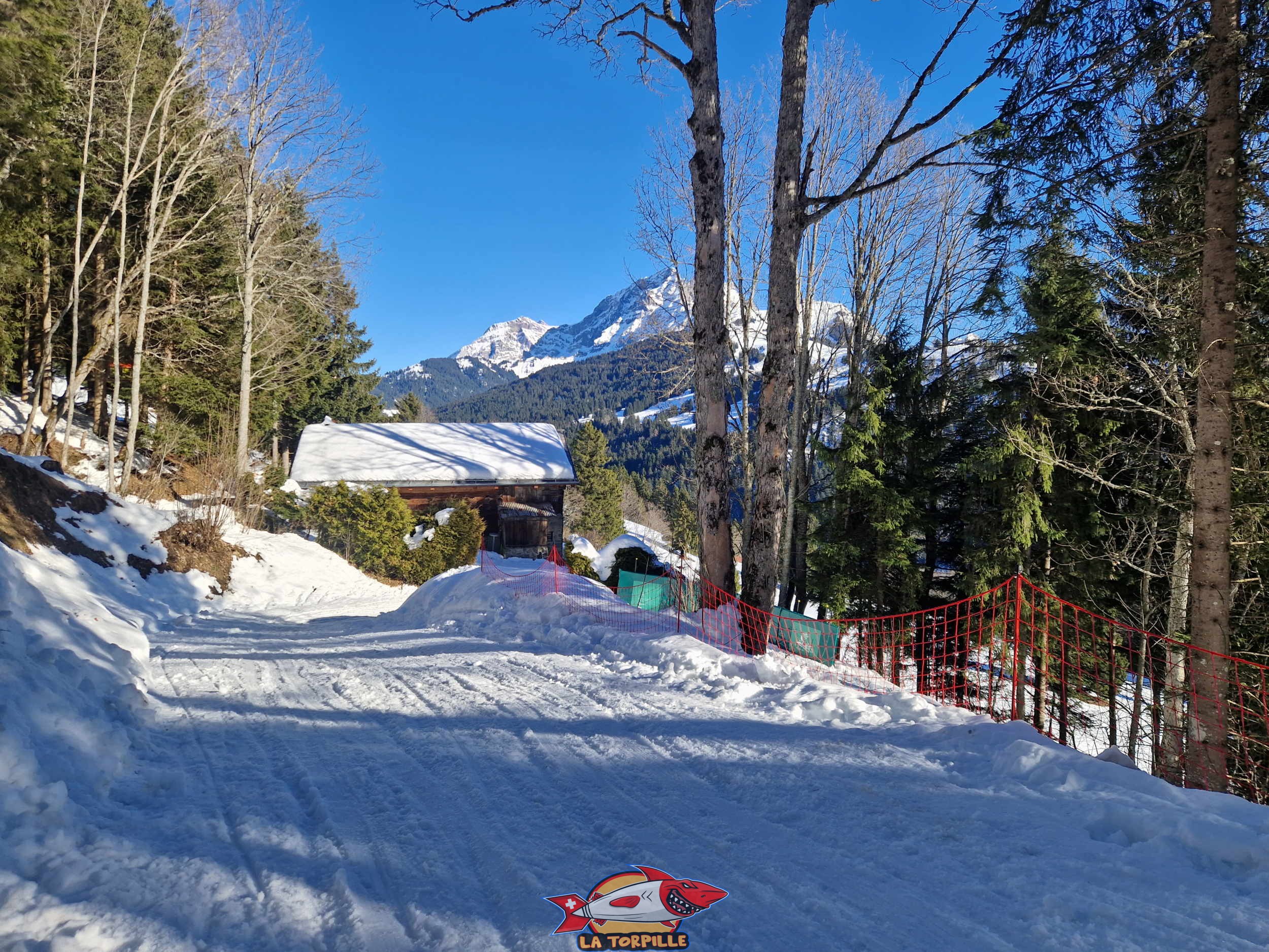 La jolie vue sur le Grand Muveran juste après la fin de la piste de luge.