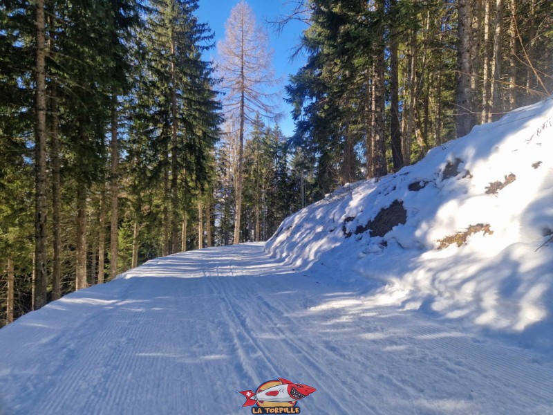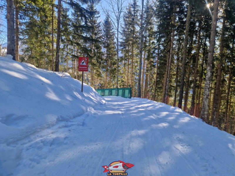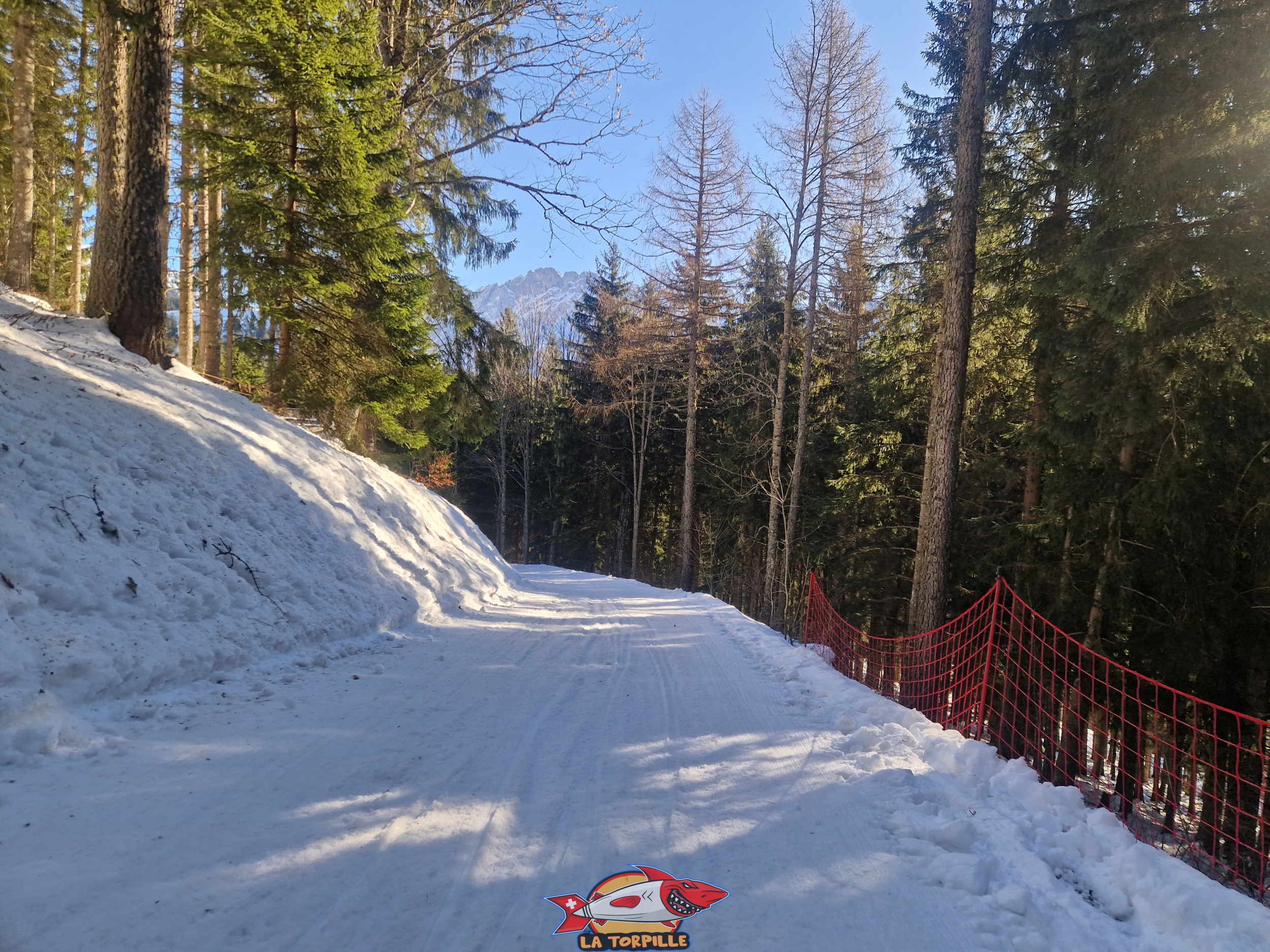 Le chemin qui permet de rejoindre le départ de la piste de luge.