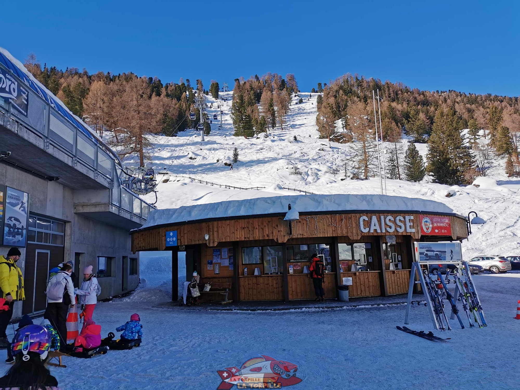 Une plateforme à côté du parking permet d’accéder à deux télésièges et une télécabine.