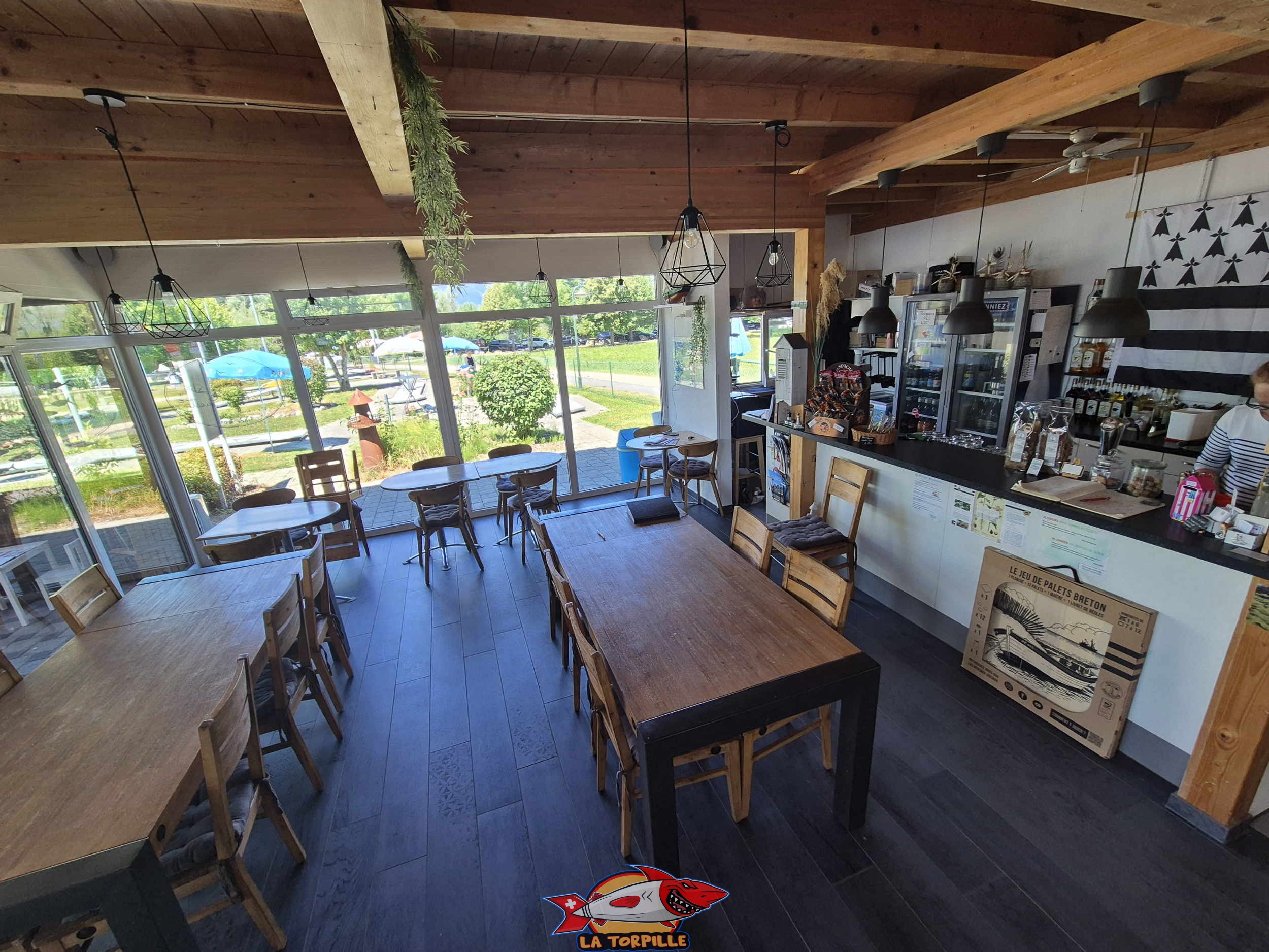 La buvette, la crêperie Vent d’Ouest, fait office de réception. Elle permet de boire un verre et déguster une crêpe bretonne.