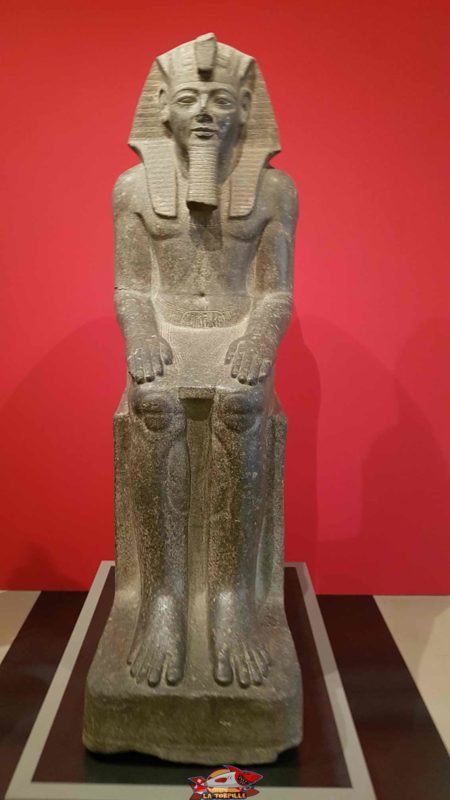 Le premier sous-sol avec une autre pièce phare du musée : la statue en pierre de Ramsès II.