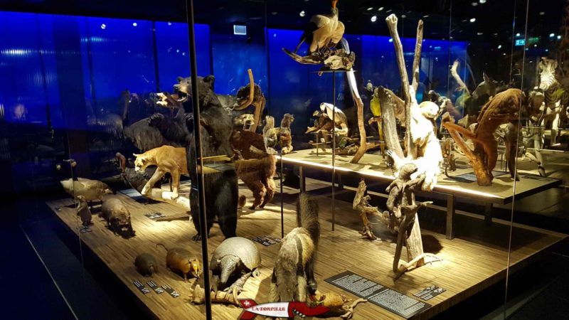 La grande salle qui abrite de nombreux animaux naturalisés de la faune mondiale.