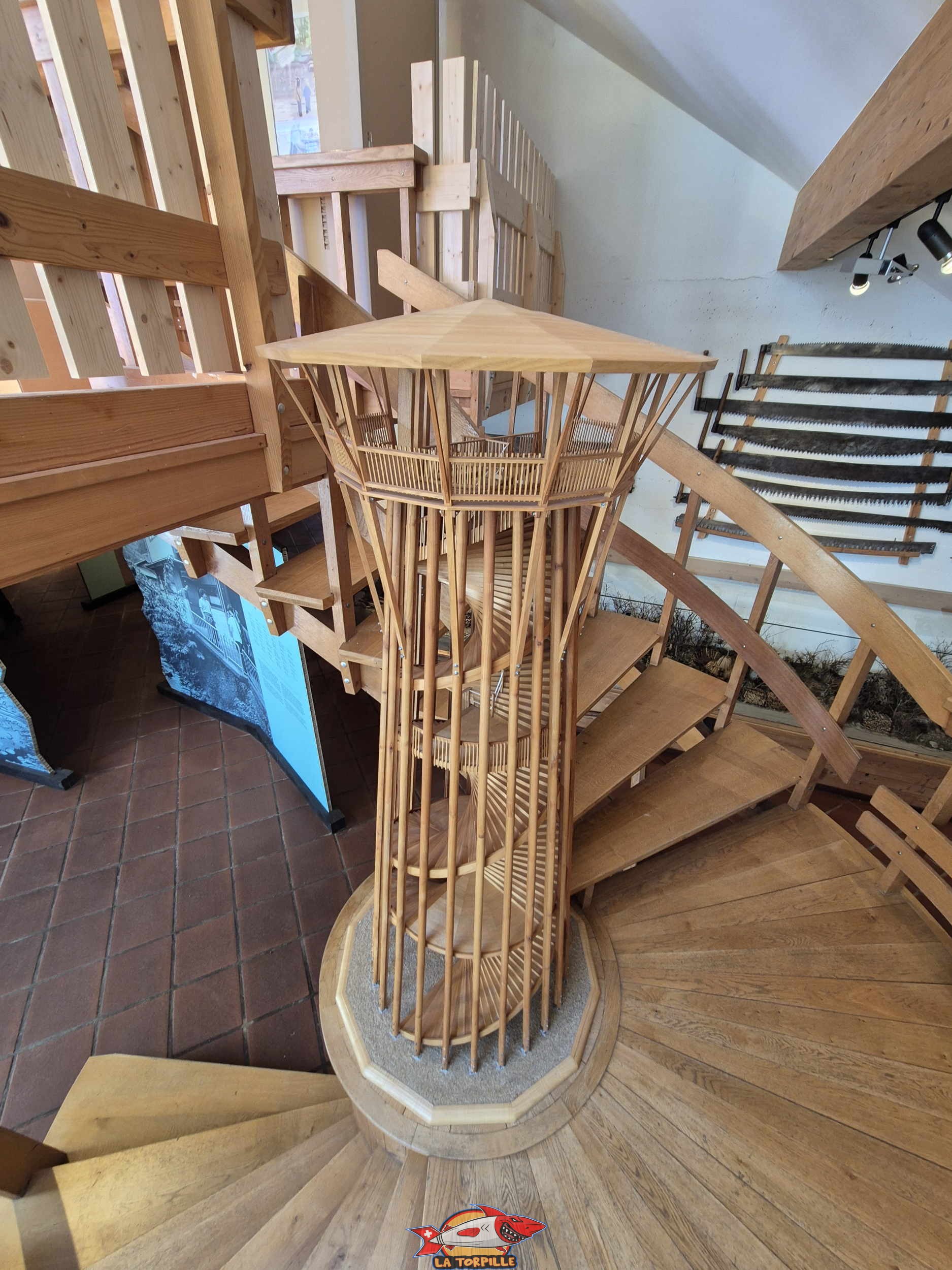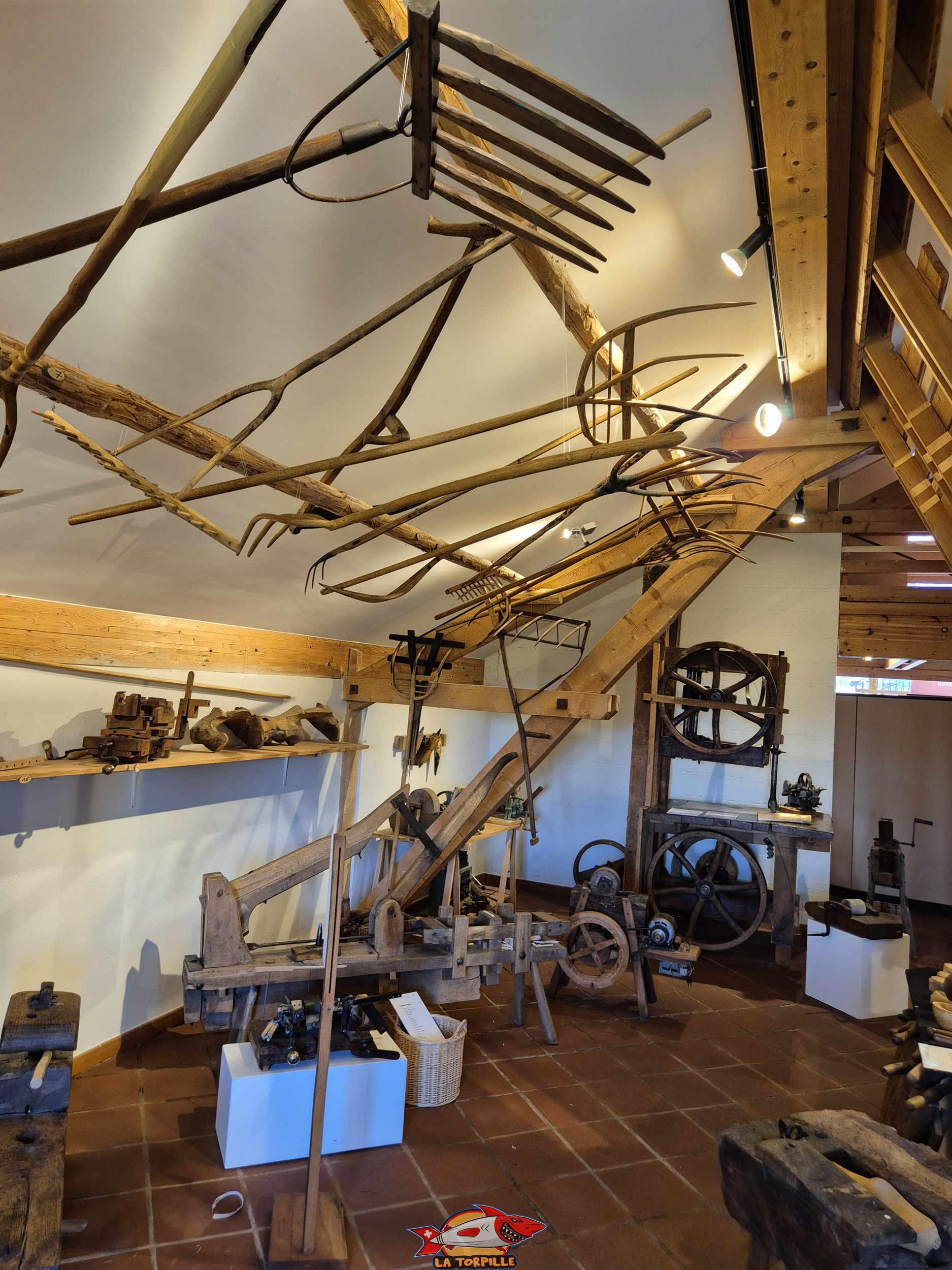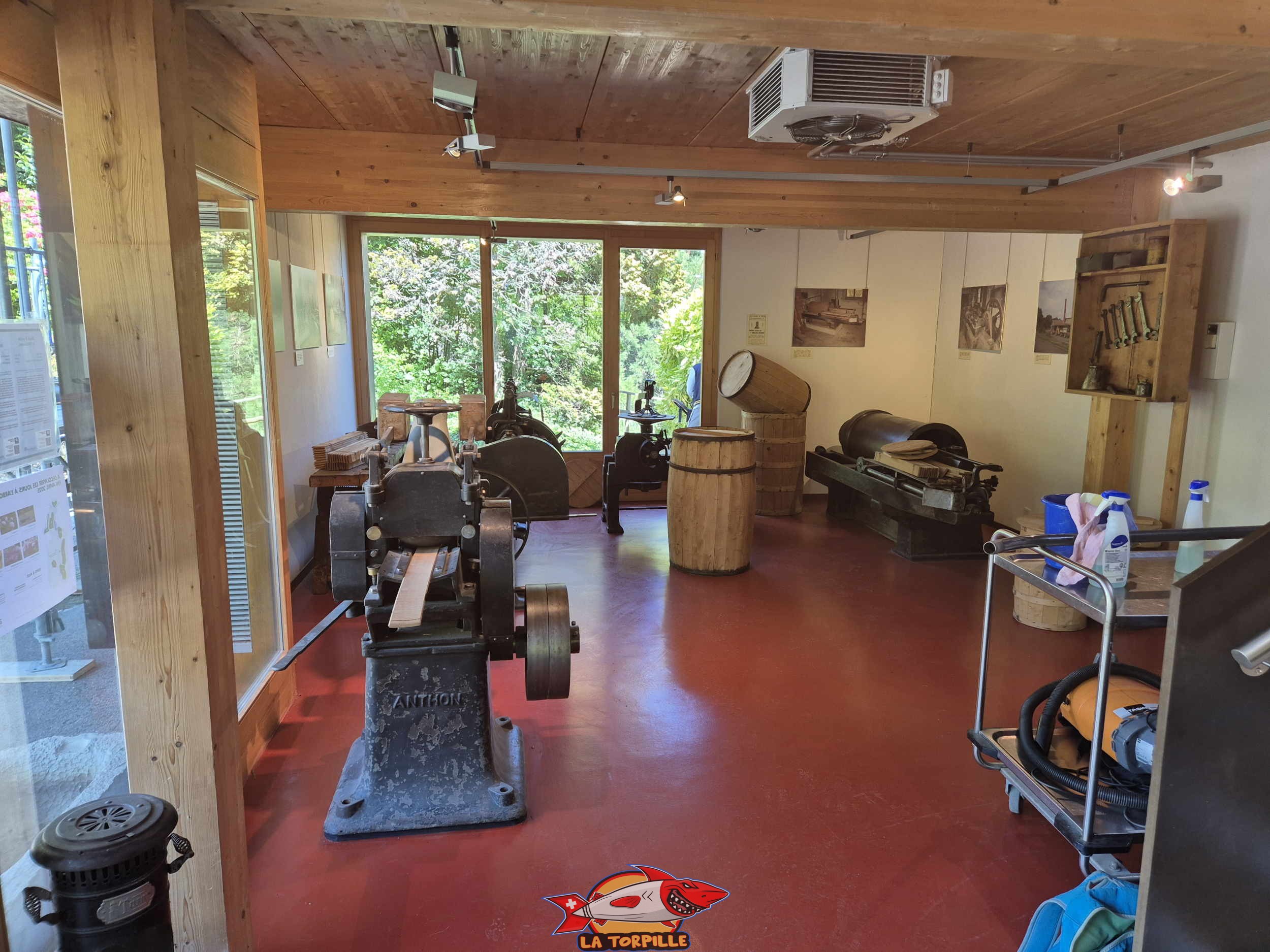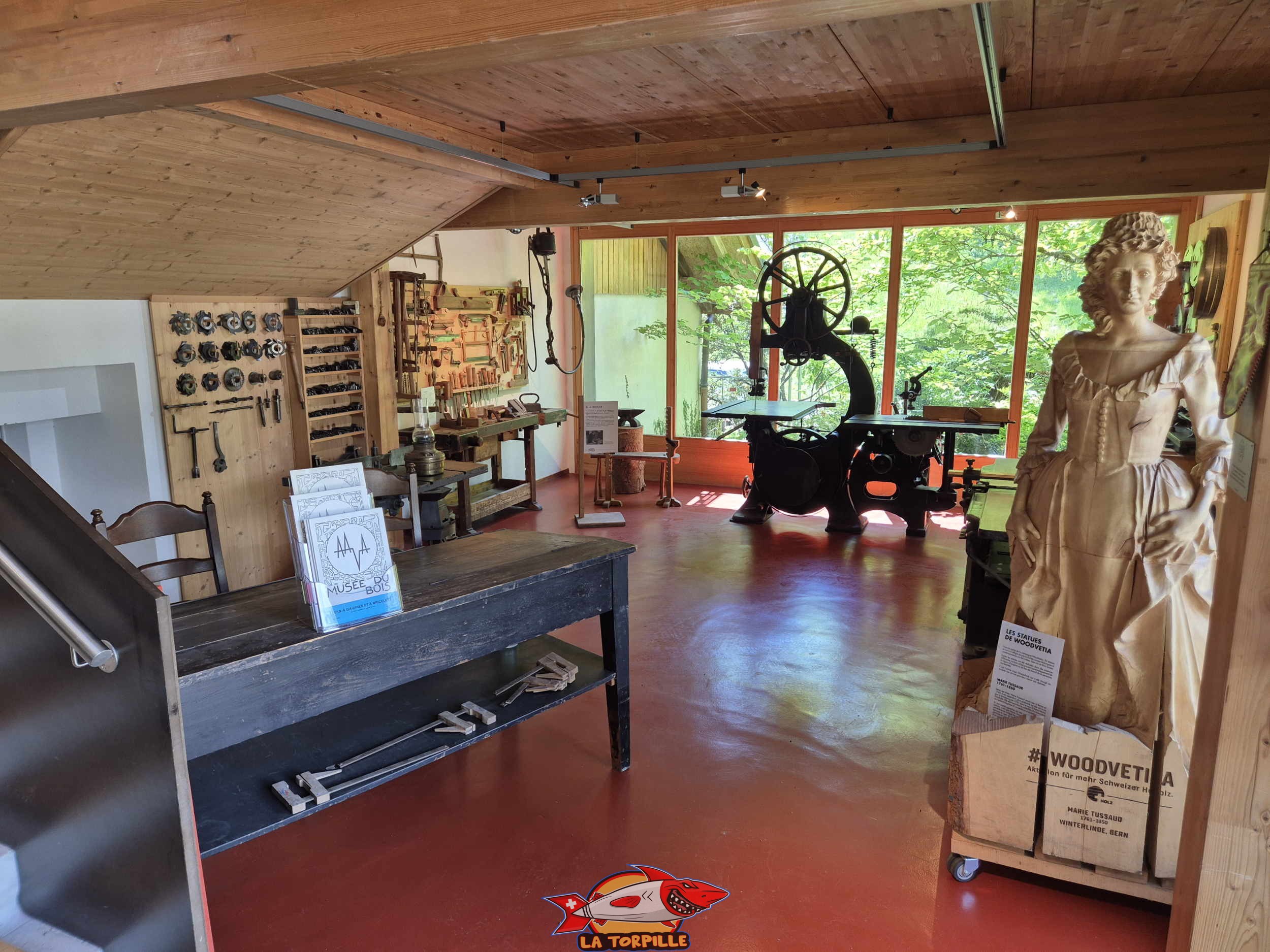 Le musée du bois présente des collections de plus de 1000 outils utilisés pour travailler le bois par de nombreux métiers comme les bûcherons, charpentiers, menuisiers, etc.