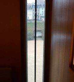 La tour médiévale dans lequel se trouve le musée. En gris, la réception.