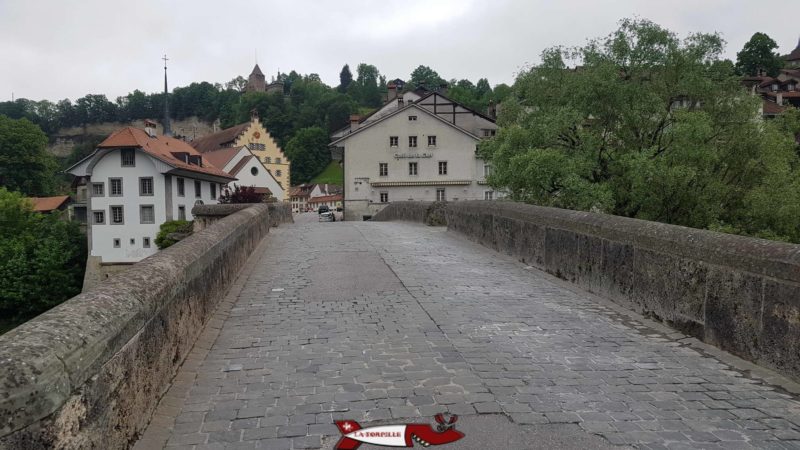 Le pont du Milieu qui permet de rejoindre le quartier de l’Auge de la ville de Fribourg.
