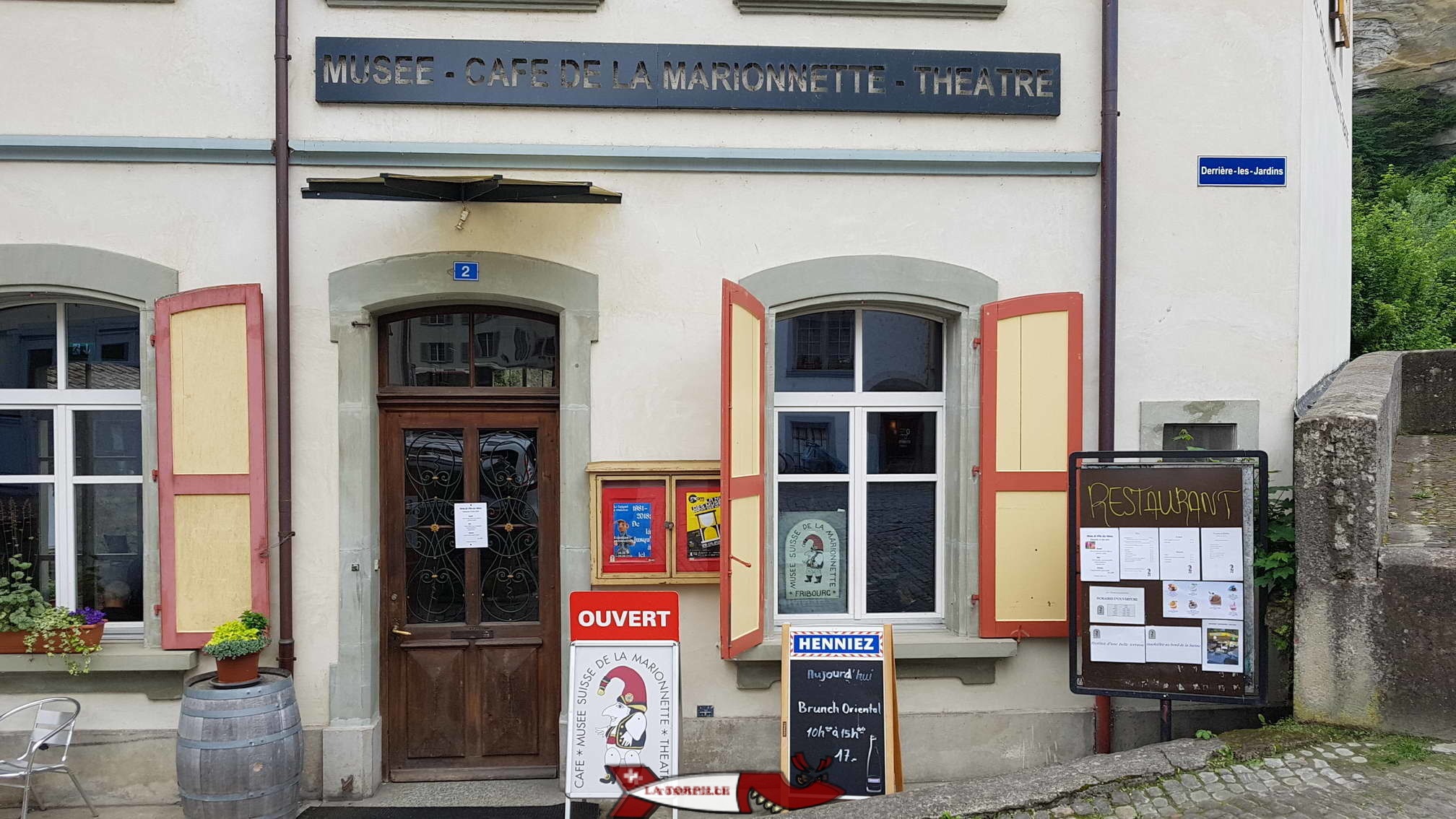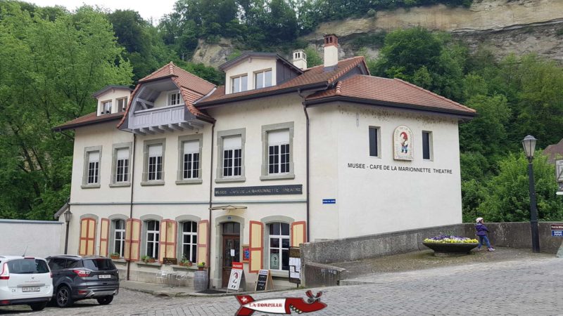 Le musée de la marionnette se trouve dans le quartier de l’Auge, à côté du bord nord-est du pont du Milieu, au bord de la Sarine.