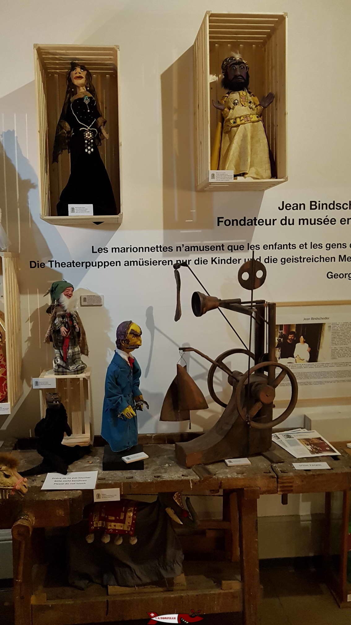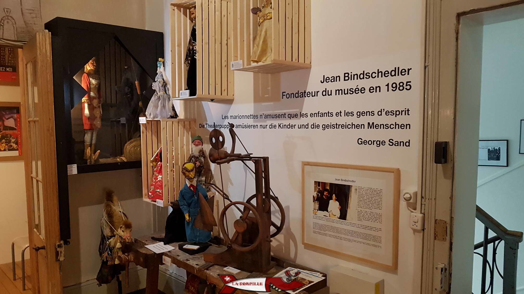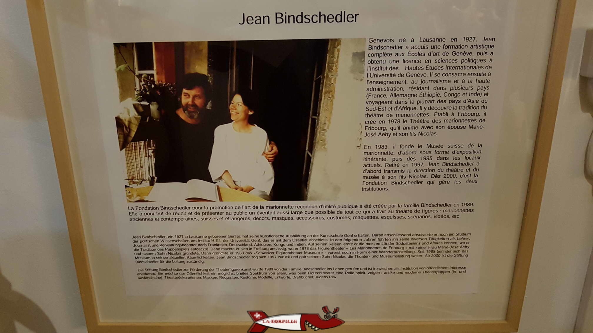 Dans la salle I, des informations sont données sur Jean Bindschedler (1927- 2019) qui fonde le musée de la marionnette en 1983. En 1985, le musée s’établit dans les locaux actuels.
