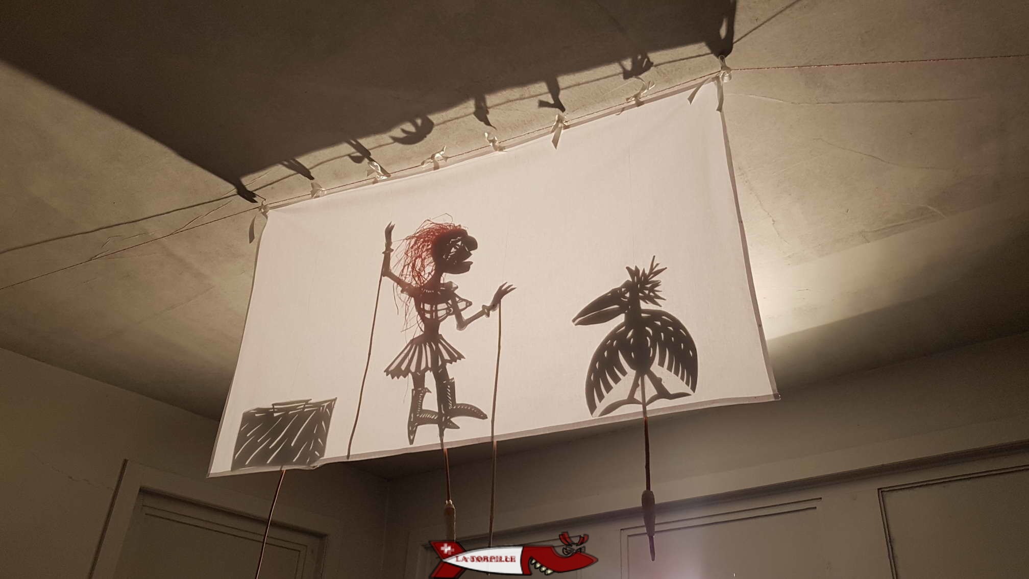 Les enfants peuvent utiliser l’atelier de bricolage et surtout un petit théâtre à marionnettes.