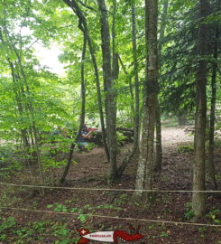 Le chemin dans la forêt pour relier les différents postes du Parc Aventure peut traverser la piste de de VTT.
