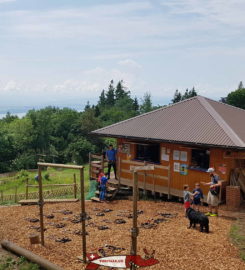 La cabane de la réception du Parc Aventure et du Laser Game se trouve juste à côté de la station supérieure du funiculaire de Chaumont.
