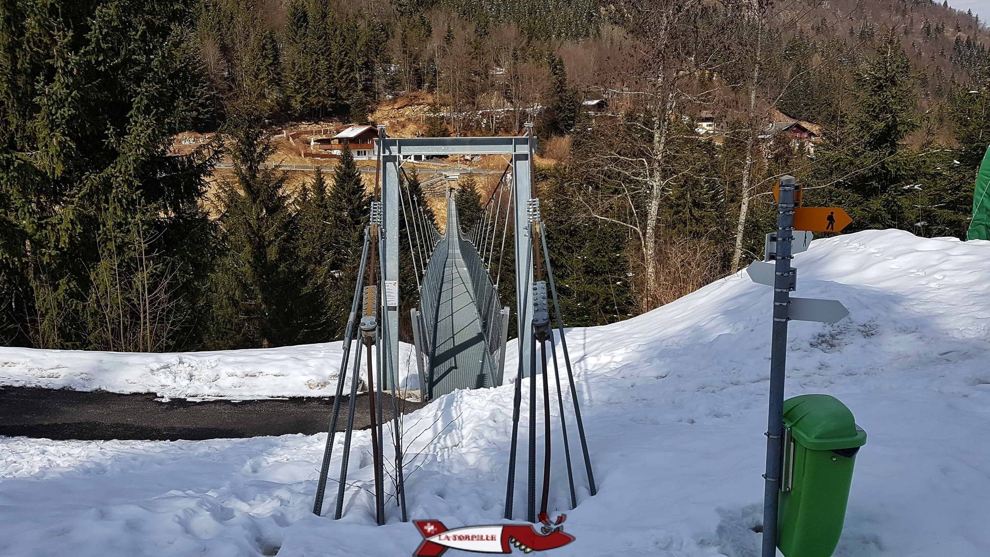 Le côté sud de la passerelle se trouve à la Jorette, à côté des grands chalets de Torgon.