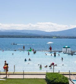 La piscine de Colovray se trouve à Nyon, dans le canton de Vaud. Elle propose également une petite plage en graviers fins au bord du Léman.