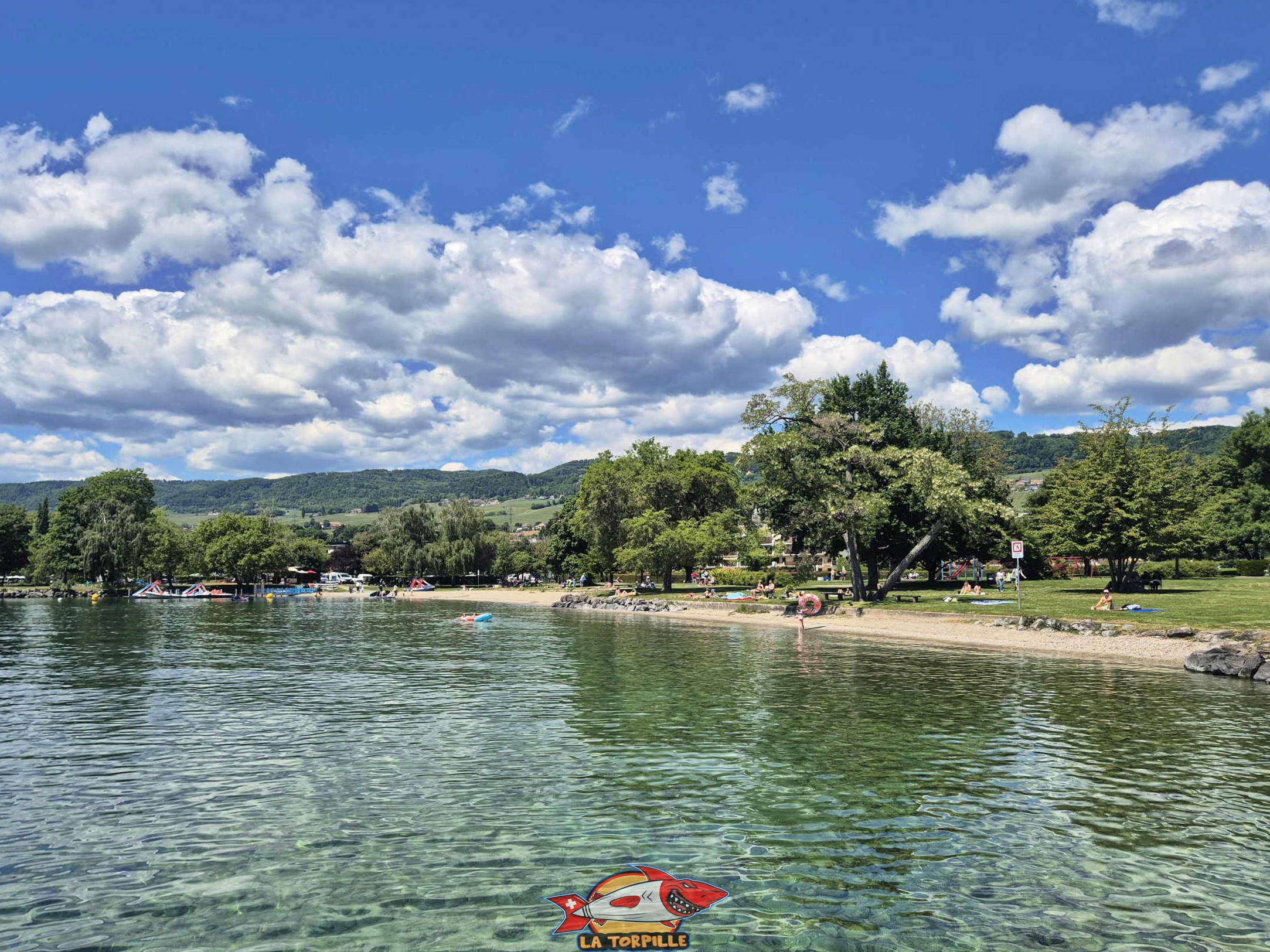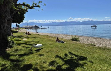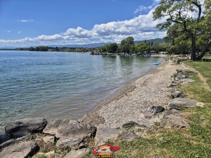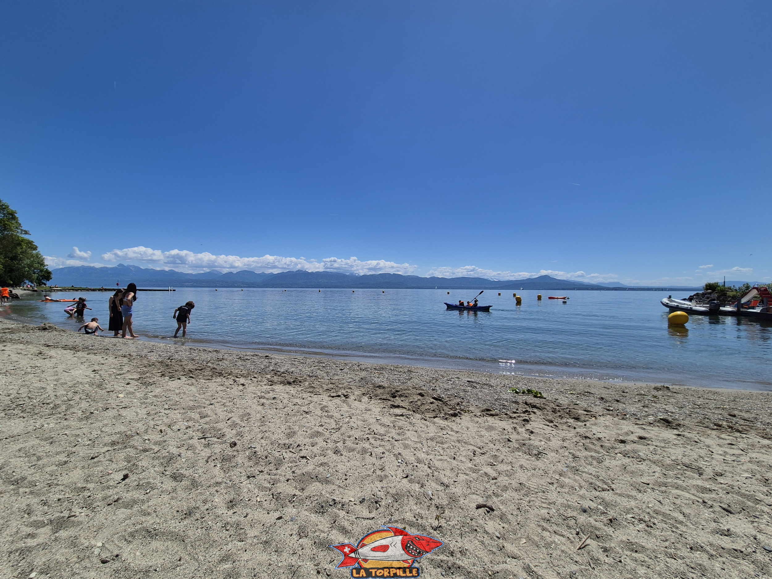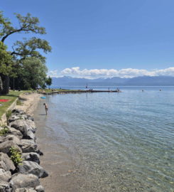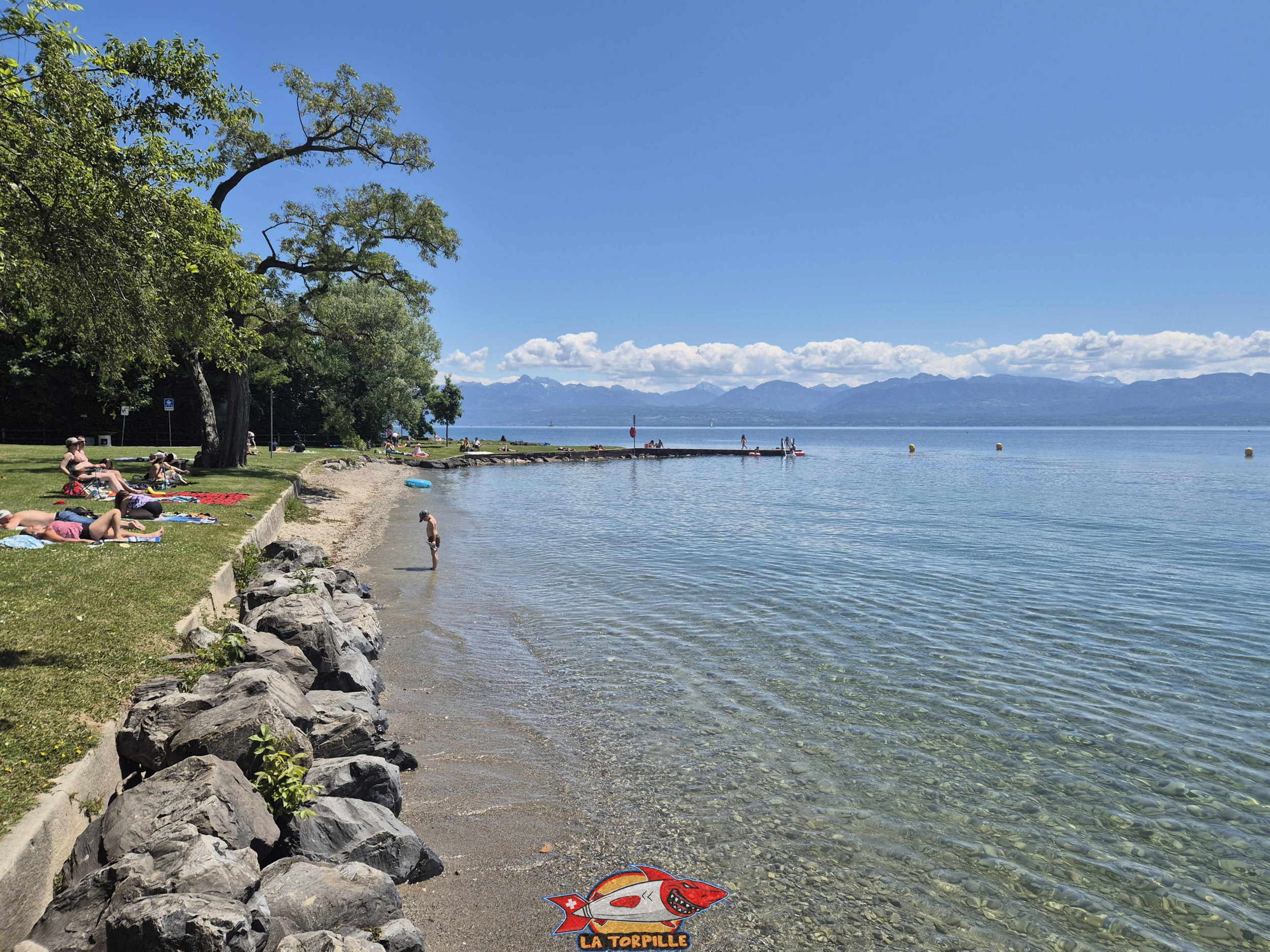 La plage de Rolle se trouve au bord du Léman, dans le canton de Vaud.