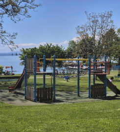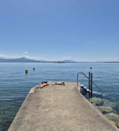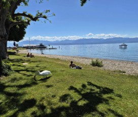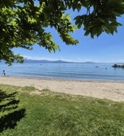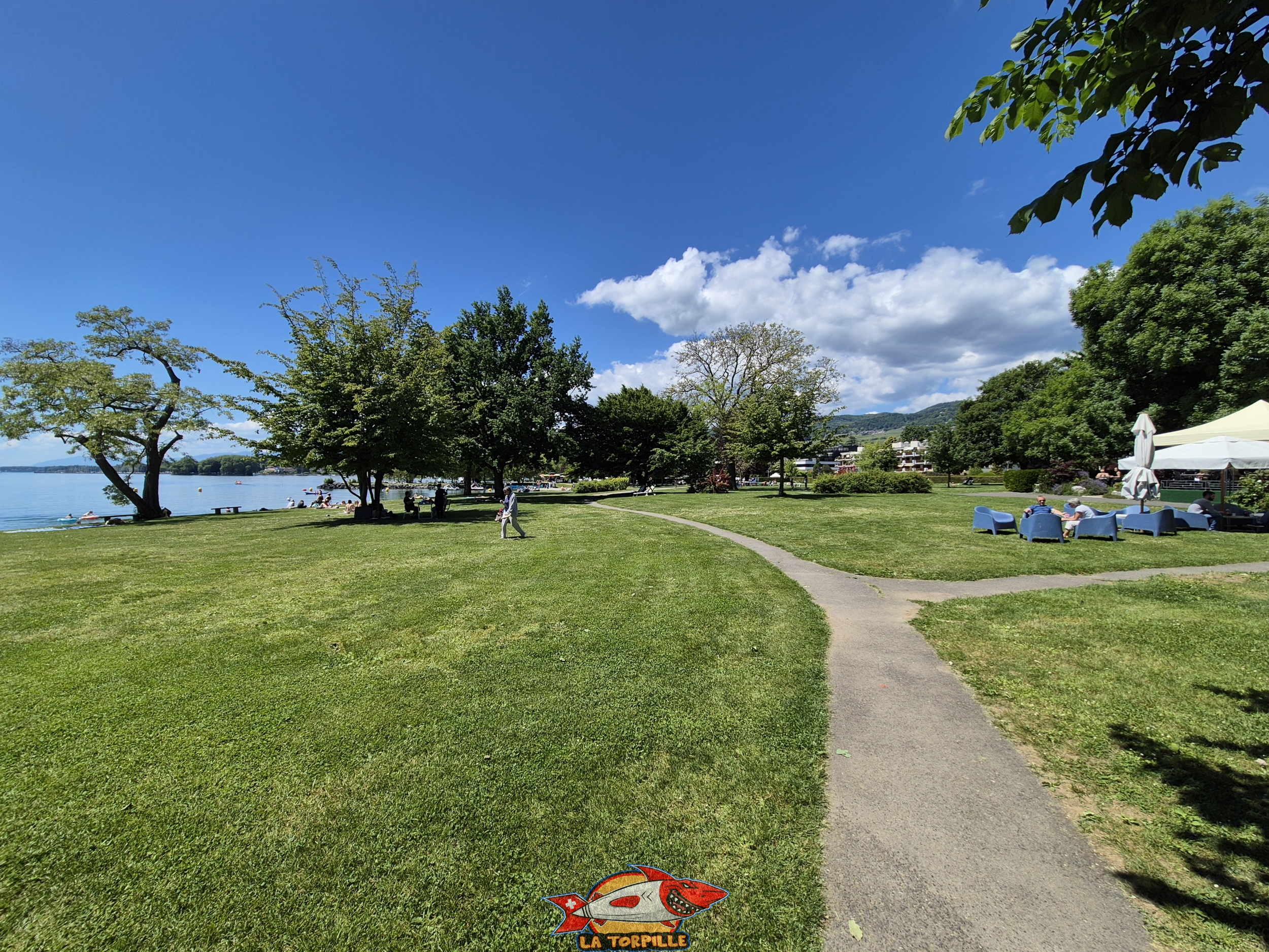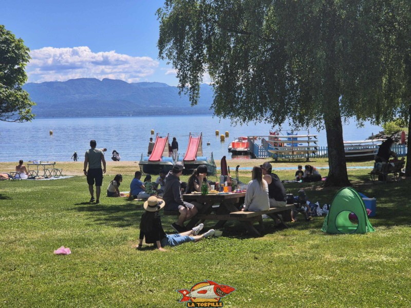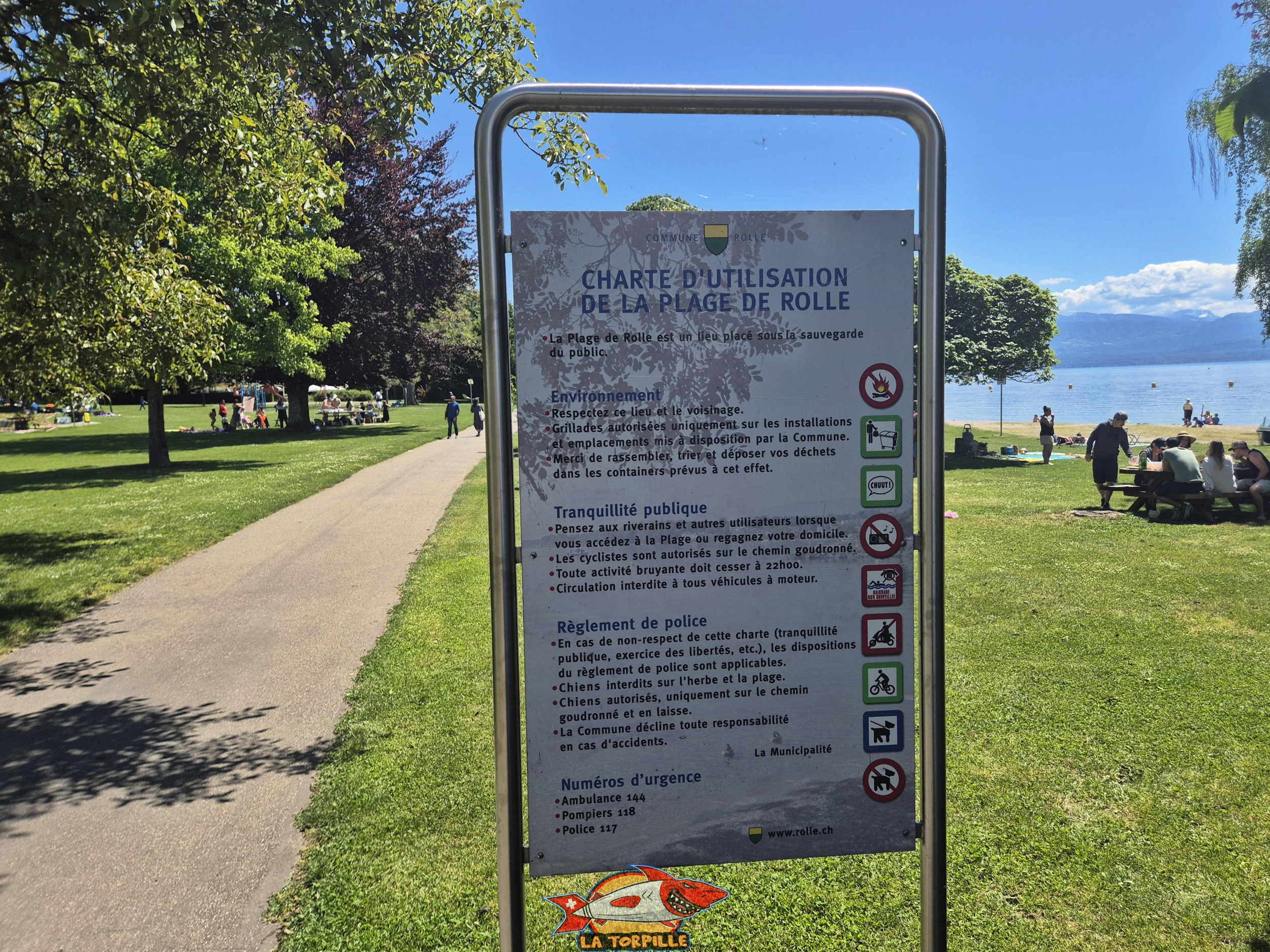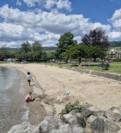 La plage de Rolle se trouve au bord du Léman, dans le canton de Vaud.