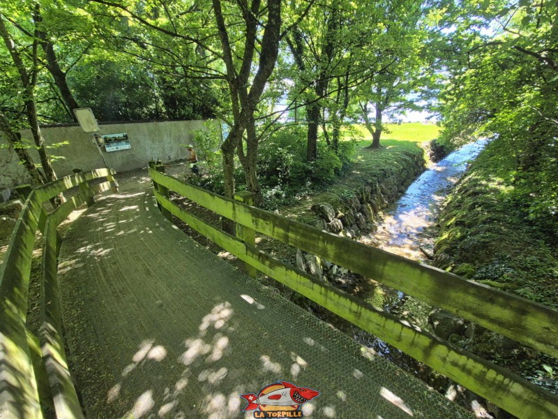 La passerelle au-dessus du ruisseau qui se jette quelques mètres plus loin dans le Léman.