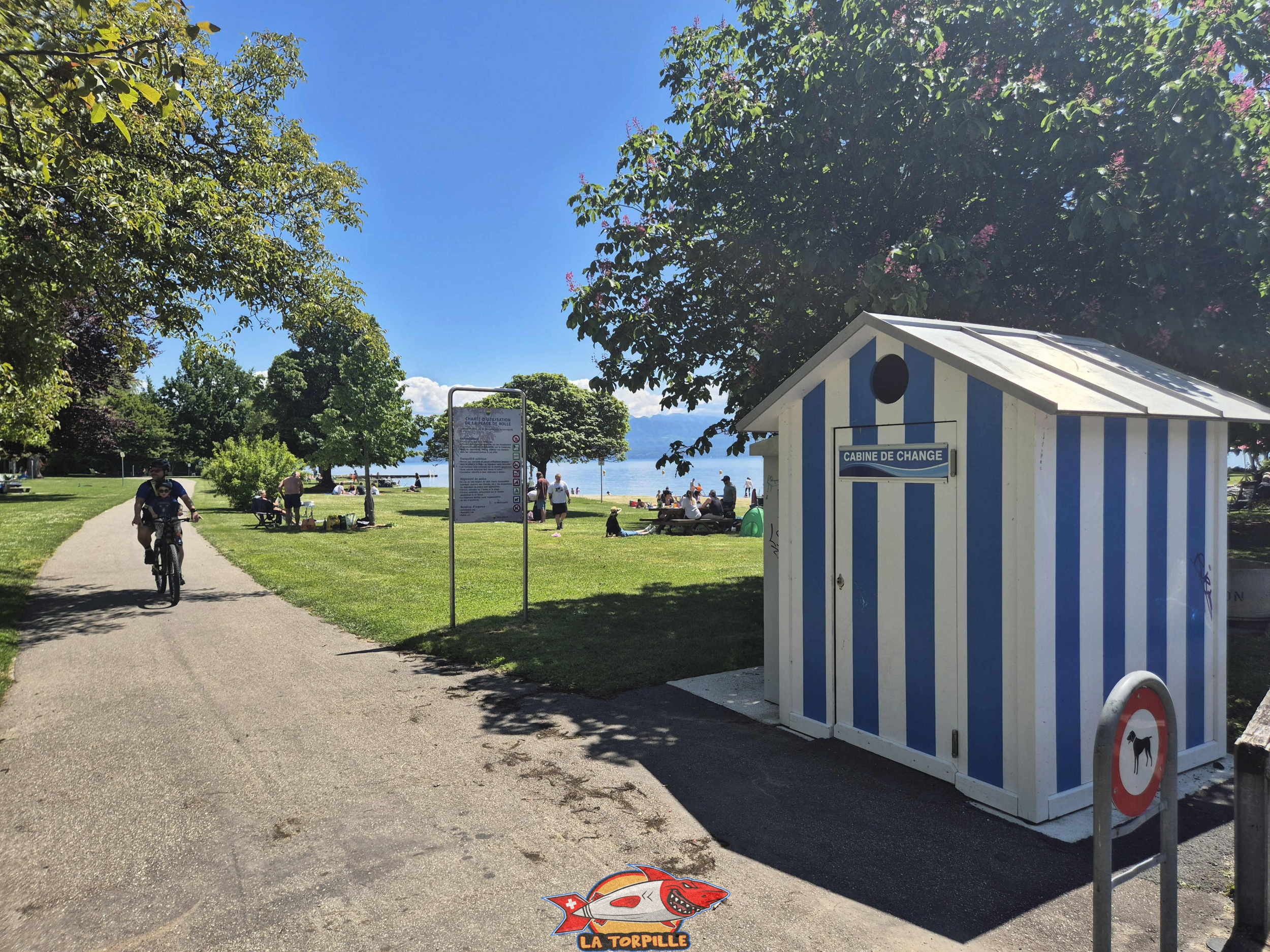 La cabine de change à l’entrée ouest de la plage de Rolle.