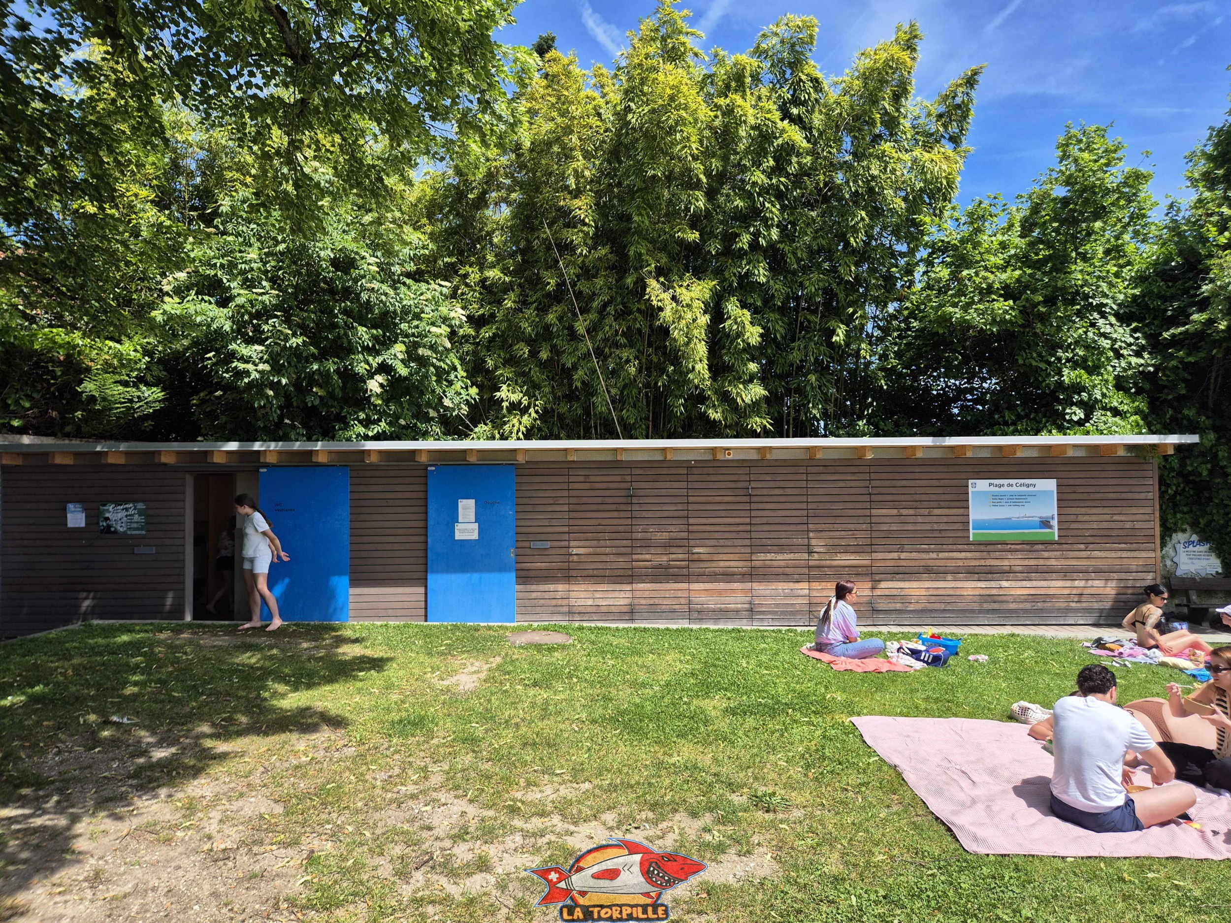 La plage est composée par une petite zone de sable et d’une bande herbeuse à côté du port et du débarcadère CGN de Céligny.