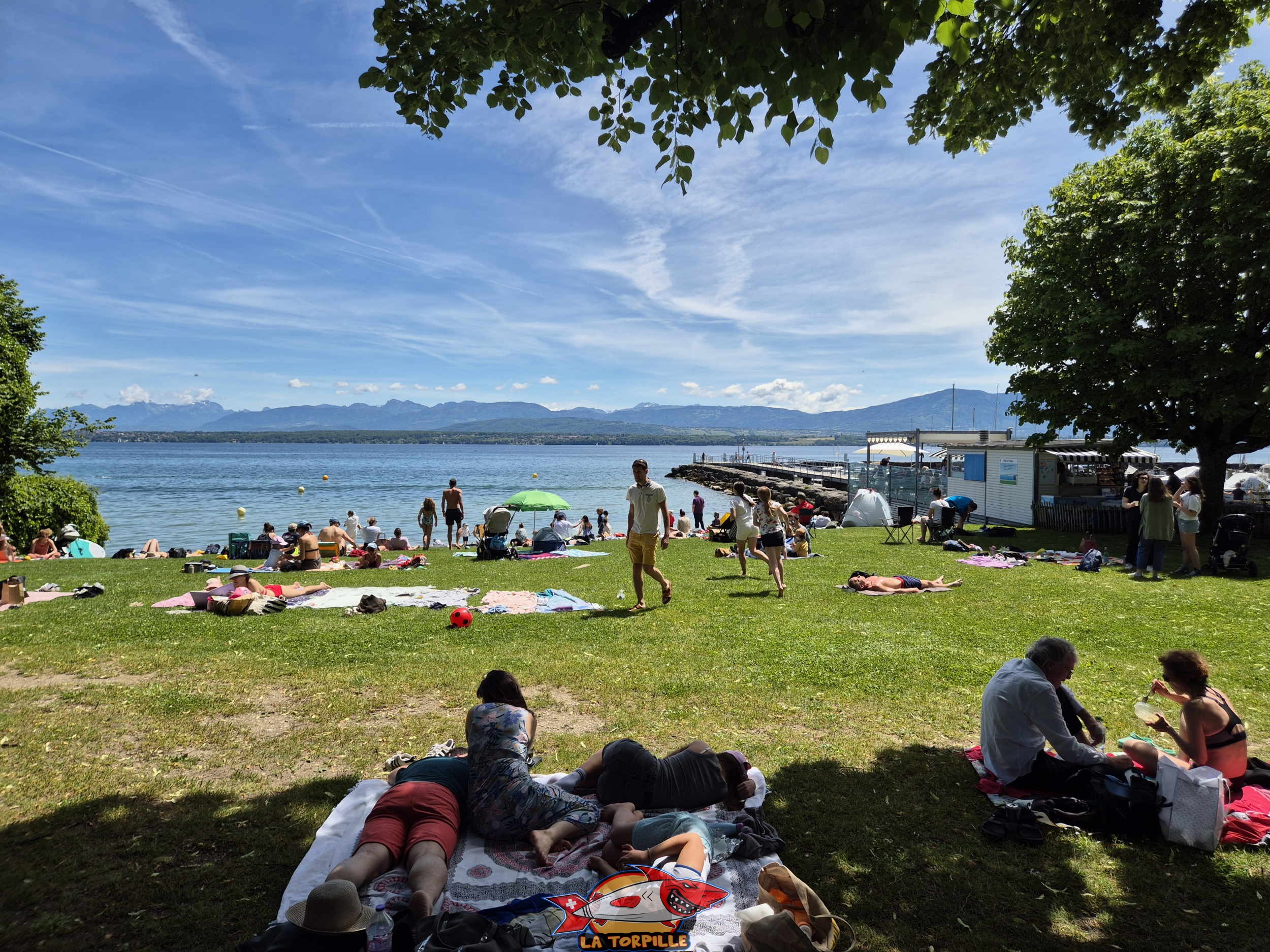 La plage de Céligny se trouve dans une enclave du canton de Genève à l’intérieur du canton de Vaud, au bord du Léman.
