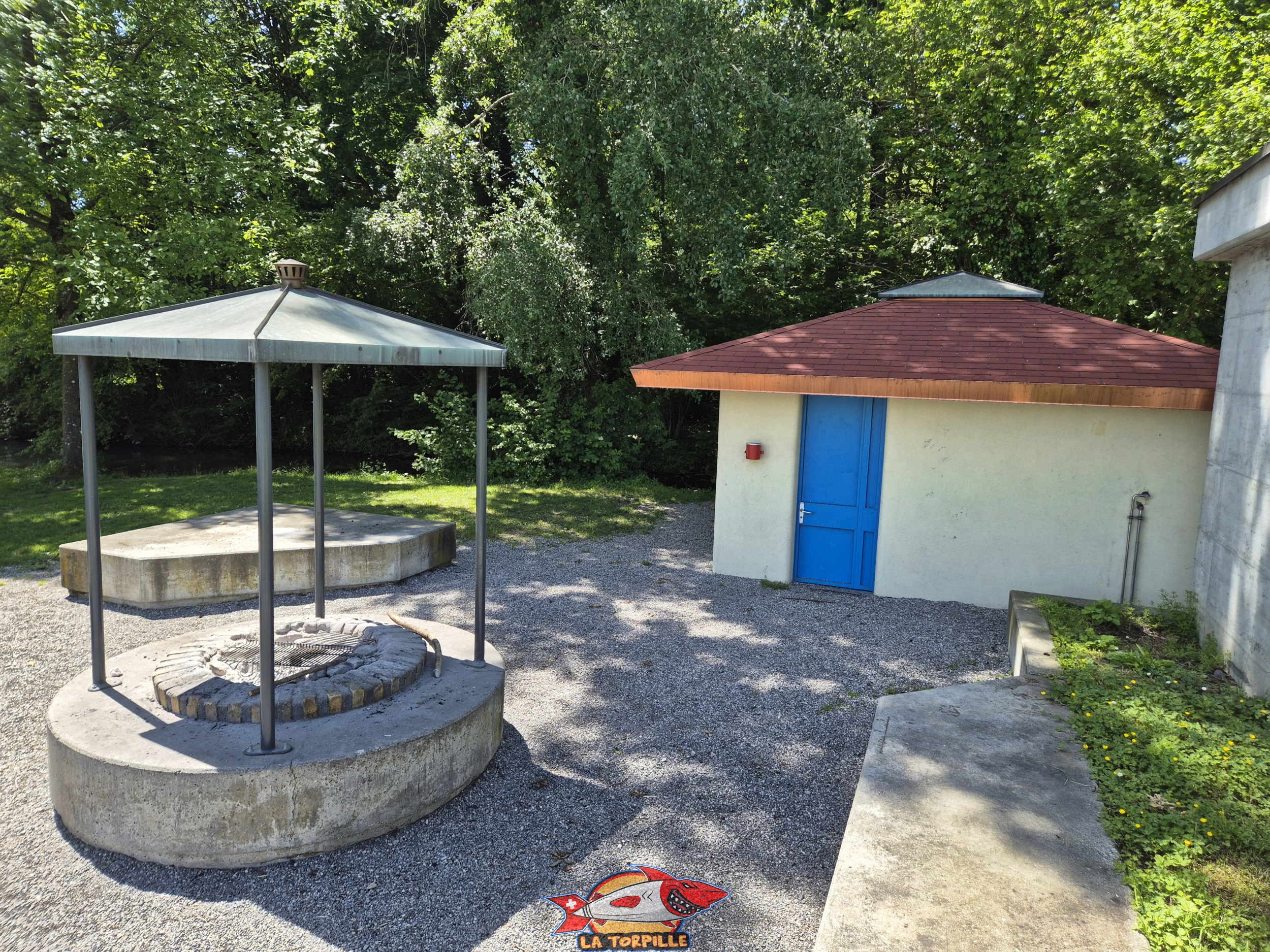 Le bâtiment des douches et des toilettes.