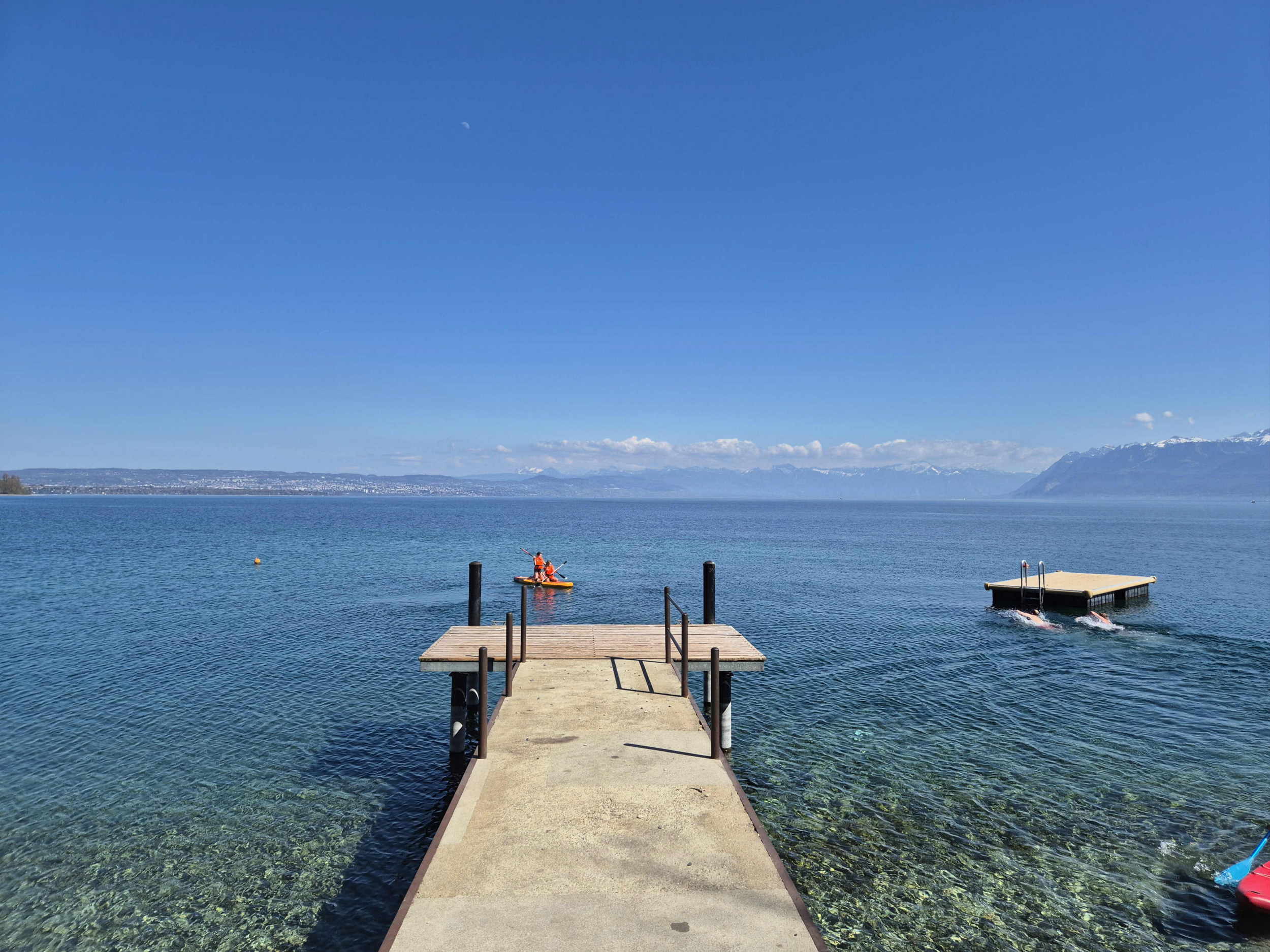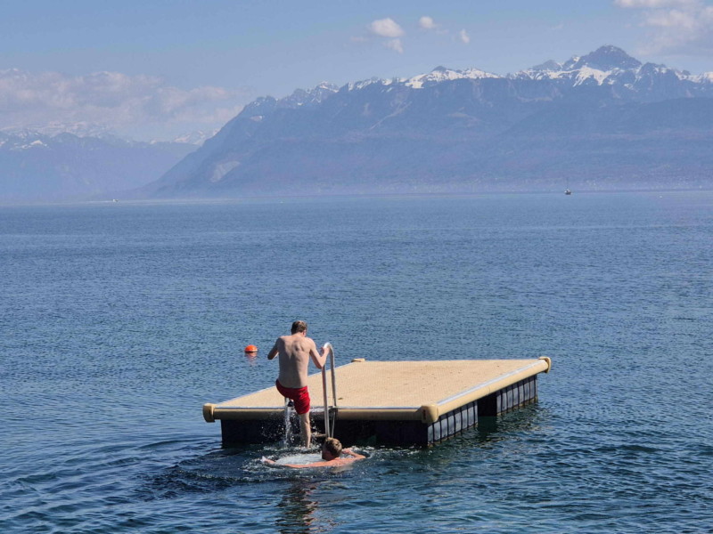 Le débarcadère CGN de St-Prex au sud de la plage de la Place d’Armes.
