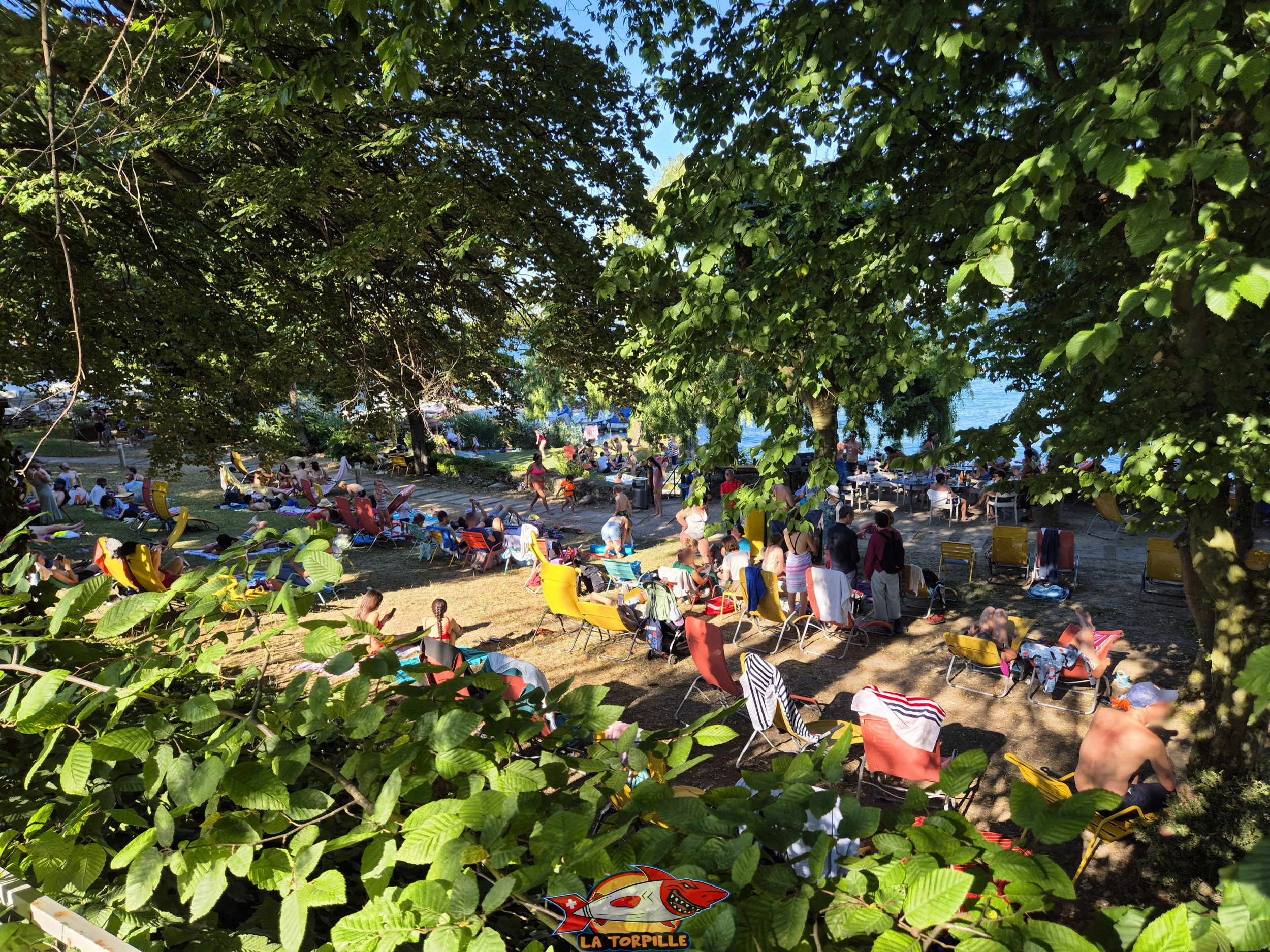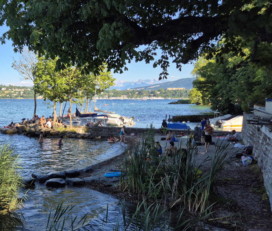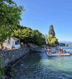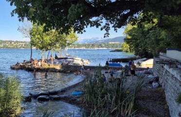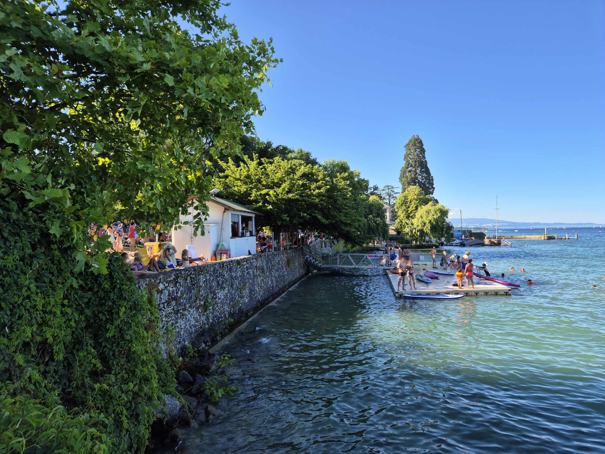 La plage se trouve sur la rive droite du Léman, dans la commune de Genève, le long de la route de Lausanne.