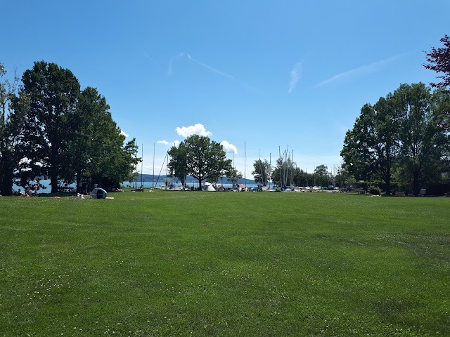 La plage de Wingreis-Engelberg, dans la commune de Twann-Tüscherz (Douanne-Daucher), au bord du lac de Bienne.