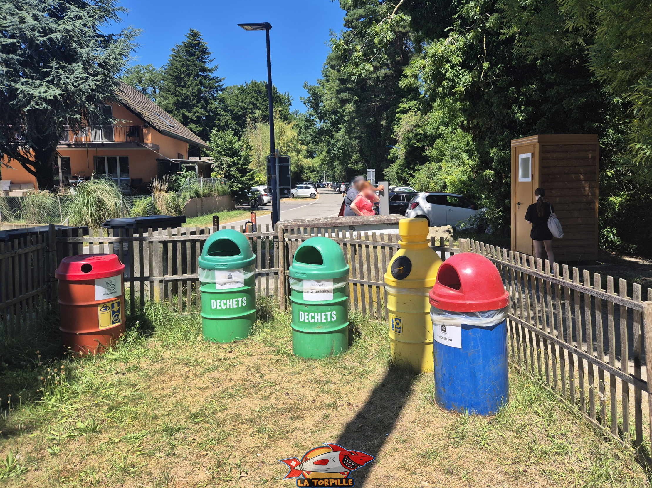 La collecte des déchets et les toilettes le long de la route du bord du lac.