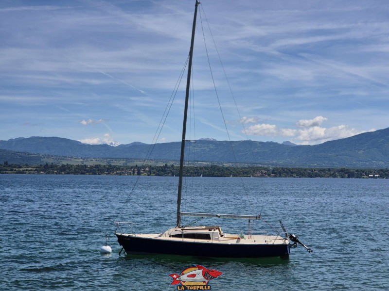 Un bateau amarré à quelques mètres de la plage des Rocailles.