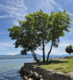 La plage des Rocailles est une petite plage de galets, à Coppet, dans la région de Nyon, au bord du Léman.