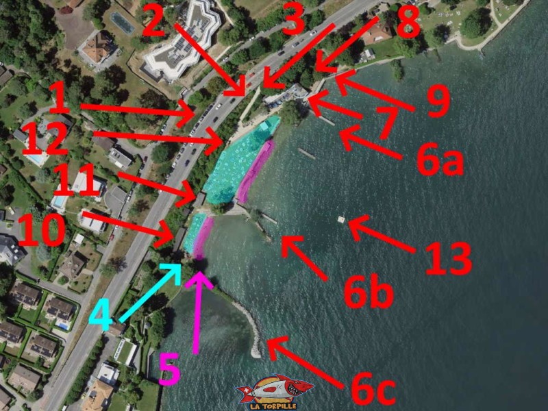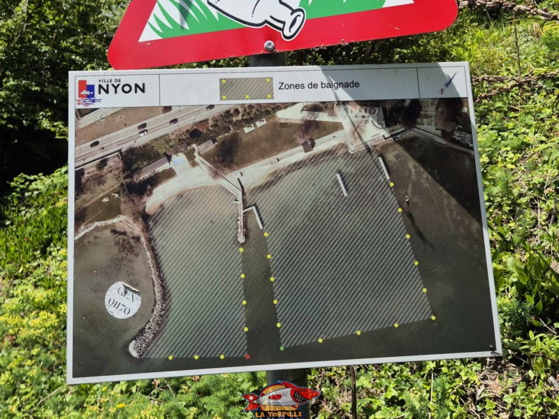 Une image qui montre les deux zones de baignade entre lesquelles se trouve une bande réservée au club de plongée.