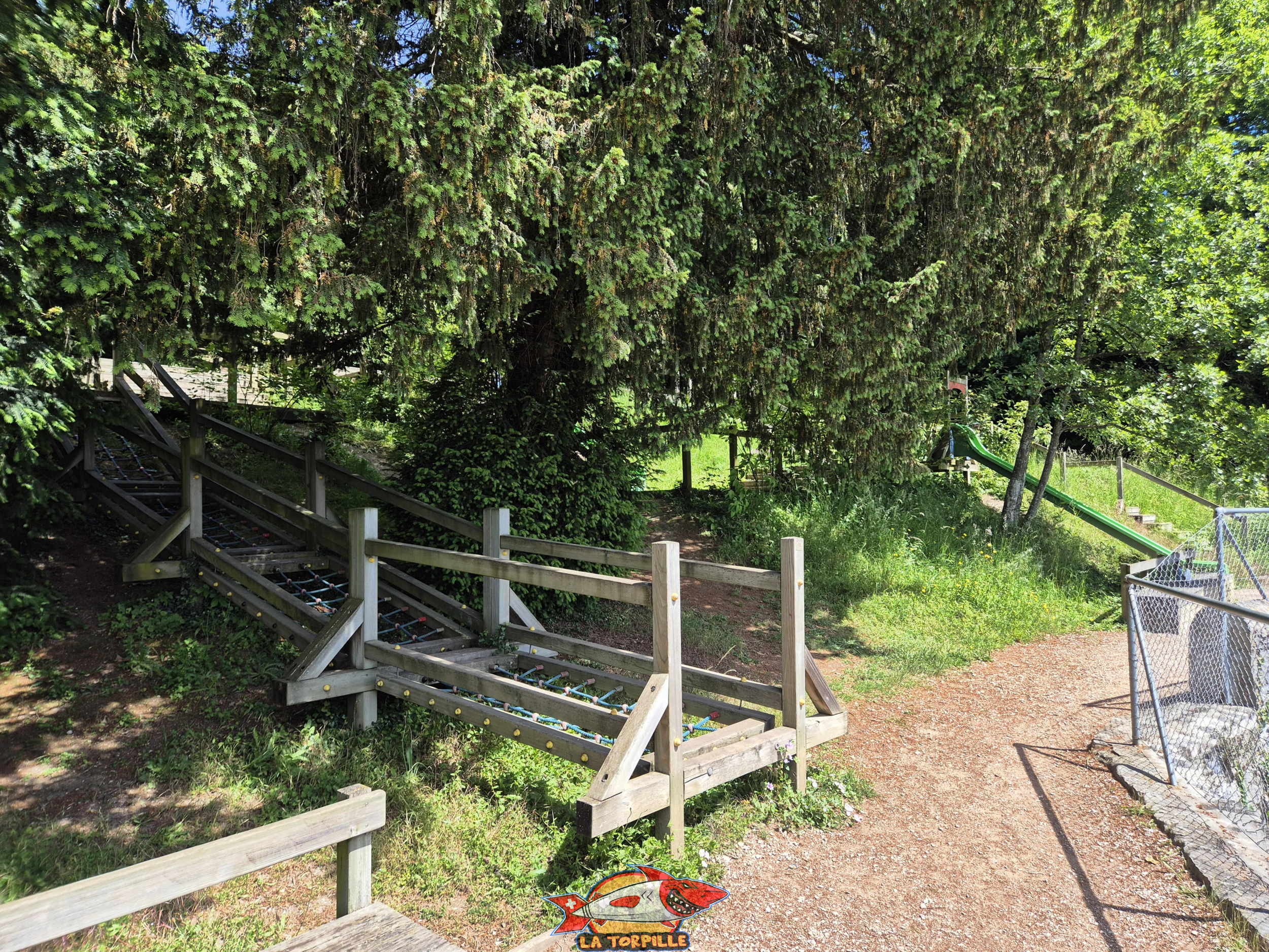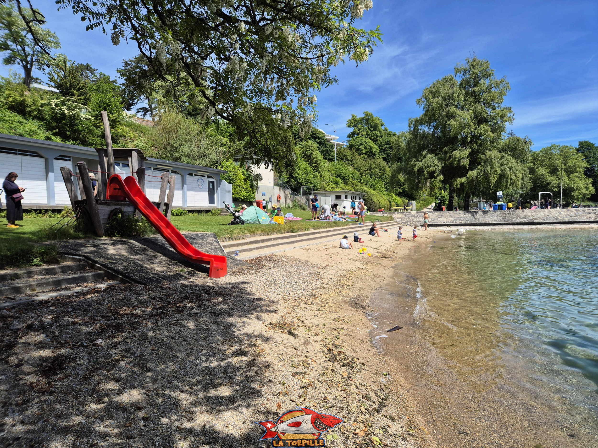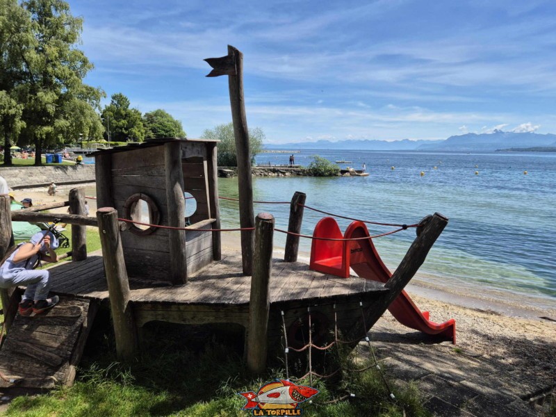 La place de jeux au sud de la plage des Trois Jetées.