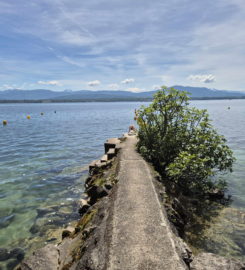 La plage des Trois Jetées se trouve à Nyon, au bord du Léman. Elle permet de profiter d’une très belle vue sur le Mont Blanc.
