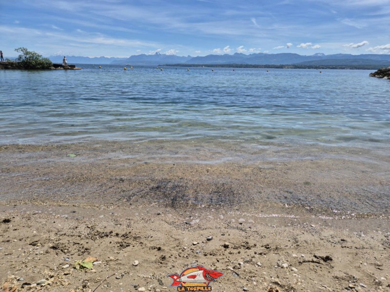 La vue direction Sud depuis la plage des Trois Jetées. Le Salève.
